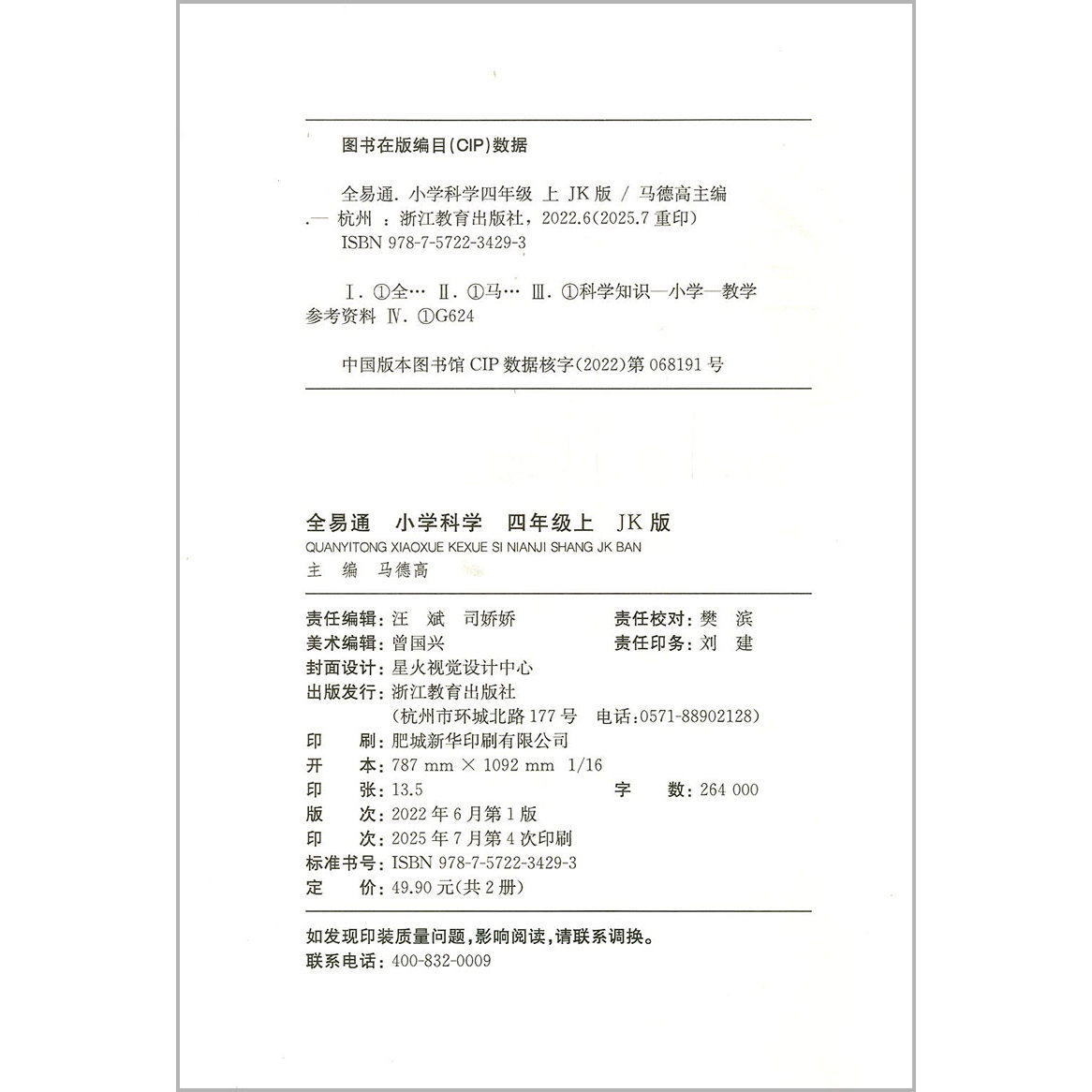 📚 2025秋全易通四年级上册科学教科版小学生4年级教材解读同步练习册讲解课本辅导书资料七彩课堂知识点全解全析拓展完全解读训练