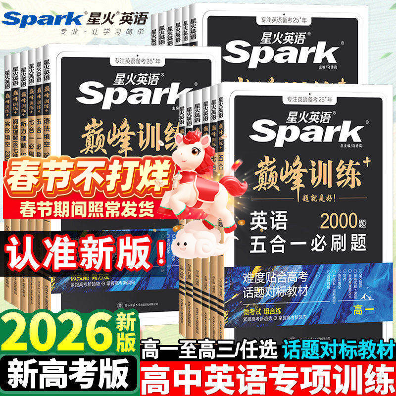 📚 2026新版星火英语高中五合一七合一必刷题巅峰训练高一高二三英语完形填空与阅读理解英语语法全解大全书高考词汇必备3500专项训练