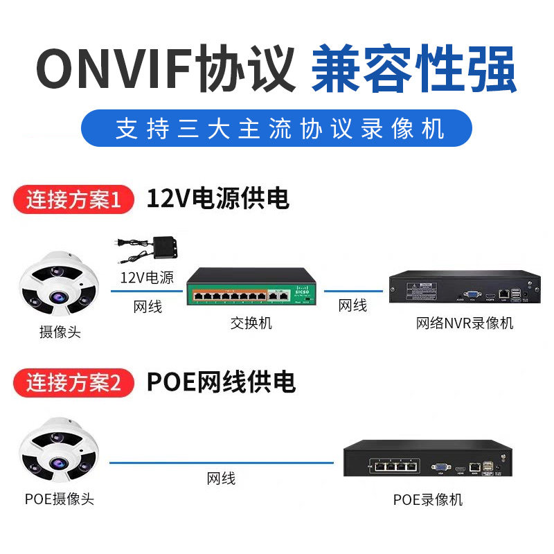 📚 800万全景摄像头鱼眼360度广角有线POE网络无死角室内监控HK协议