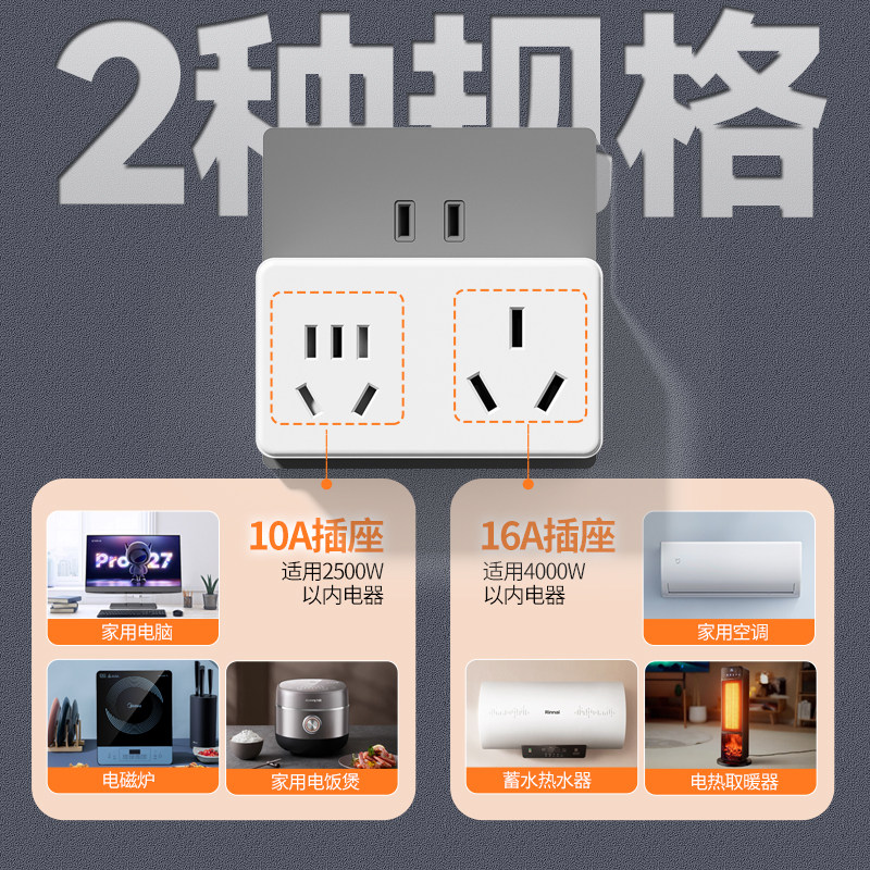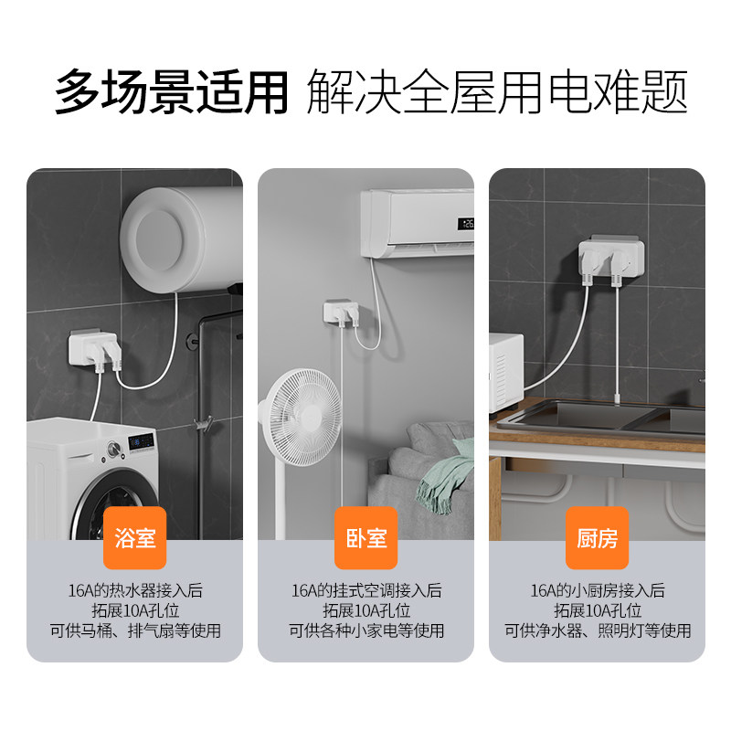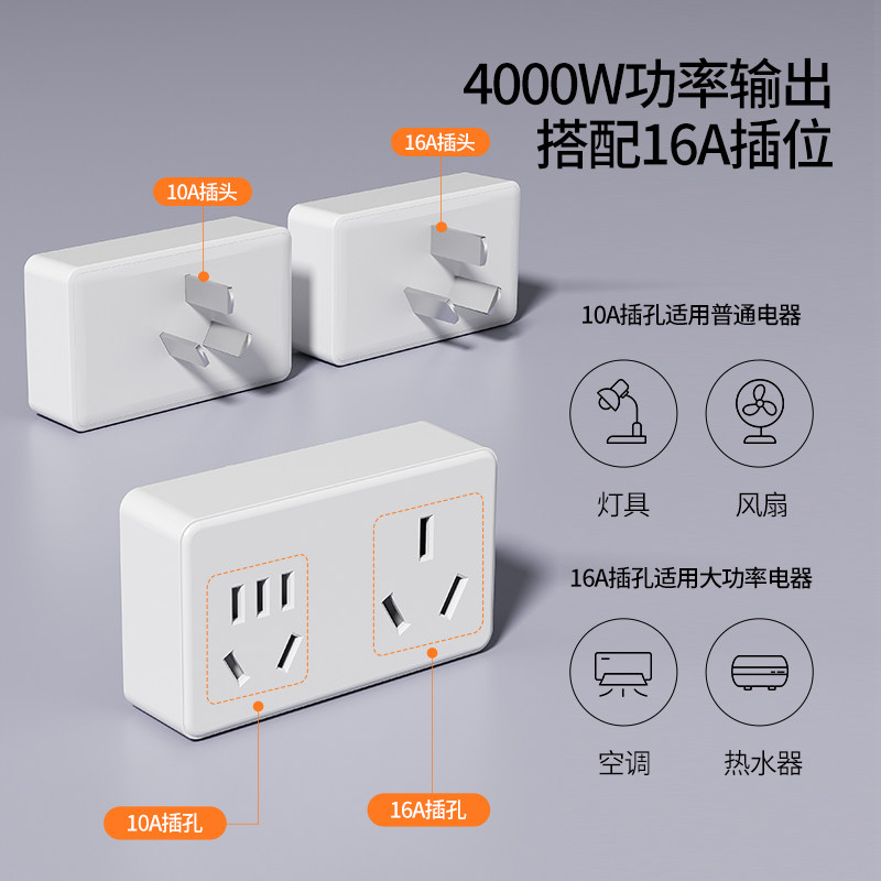 📚 16a转10a插座转换器一转二4000W多功能插排16安空调转换插头电源