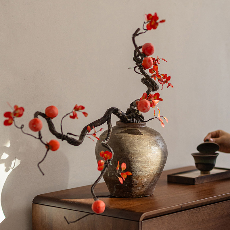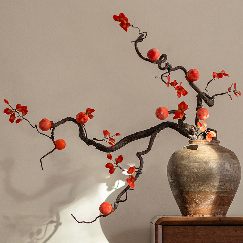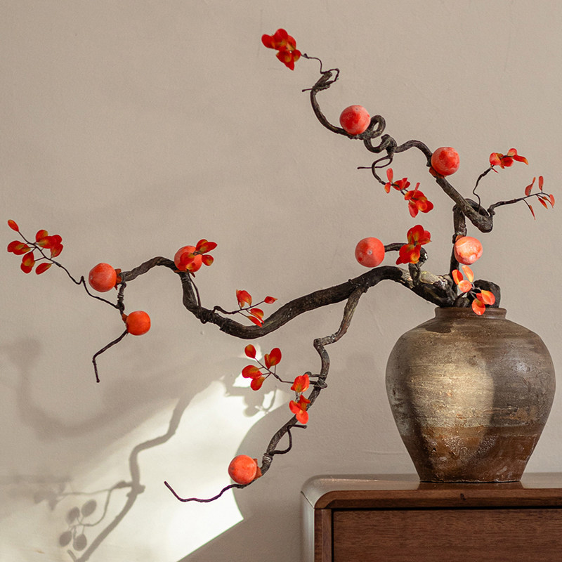 📚 柿子干花仿真花高级感逼真假花客厅插花摆设柿柿如意长枝干枝摆件
