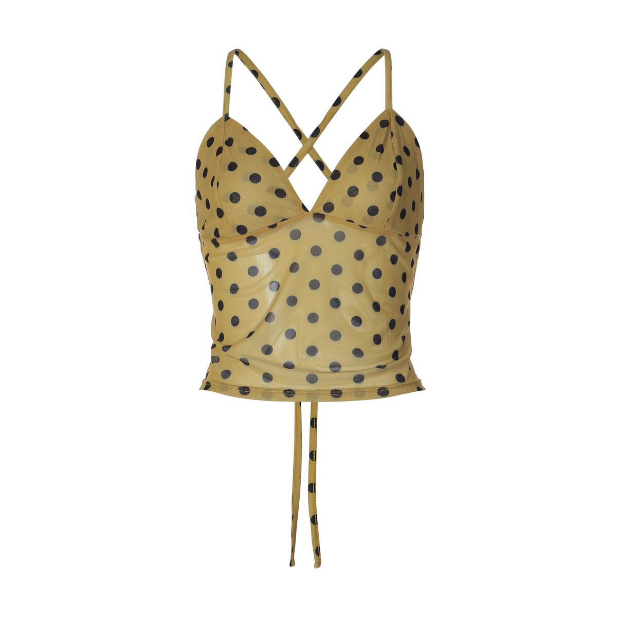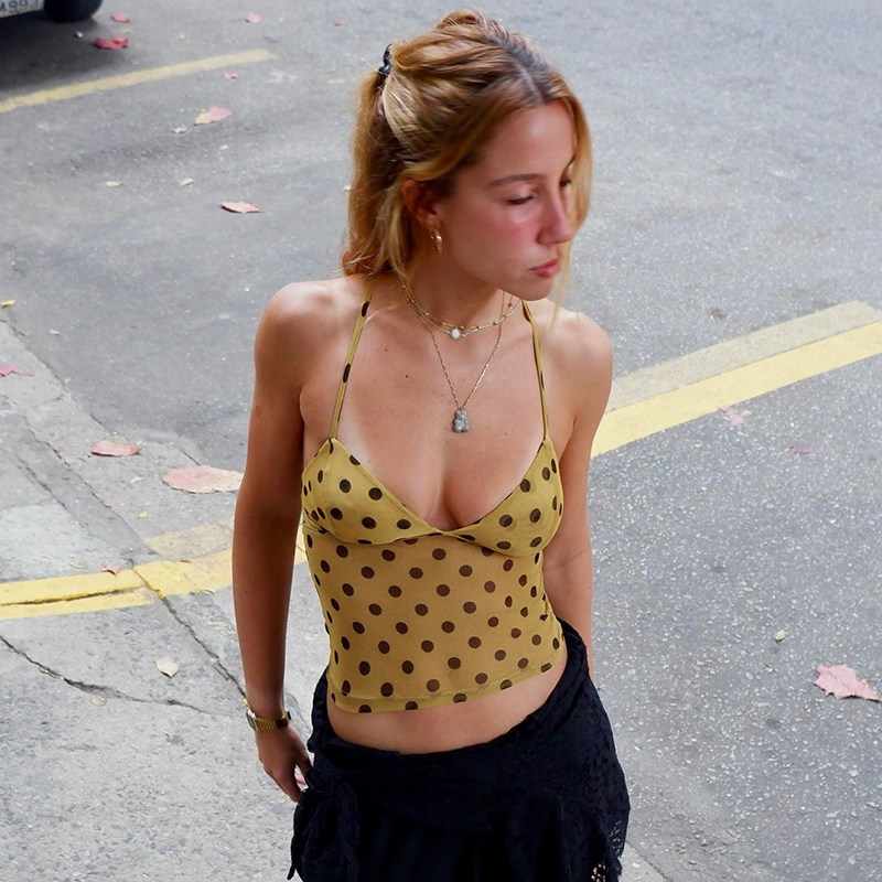 📚 shemoda欧美风性感波点印花网纱V领露背系绳吊带背心女辣妹短上衣