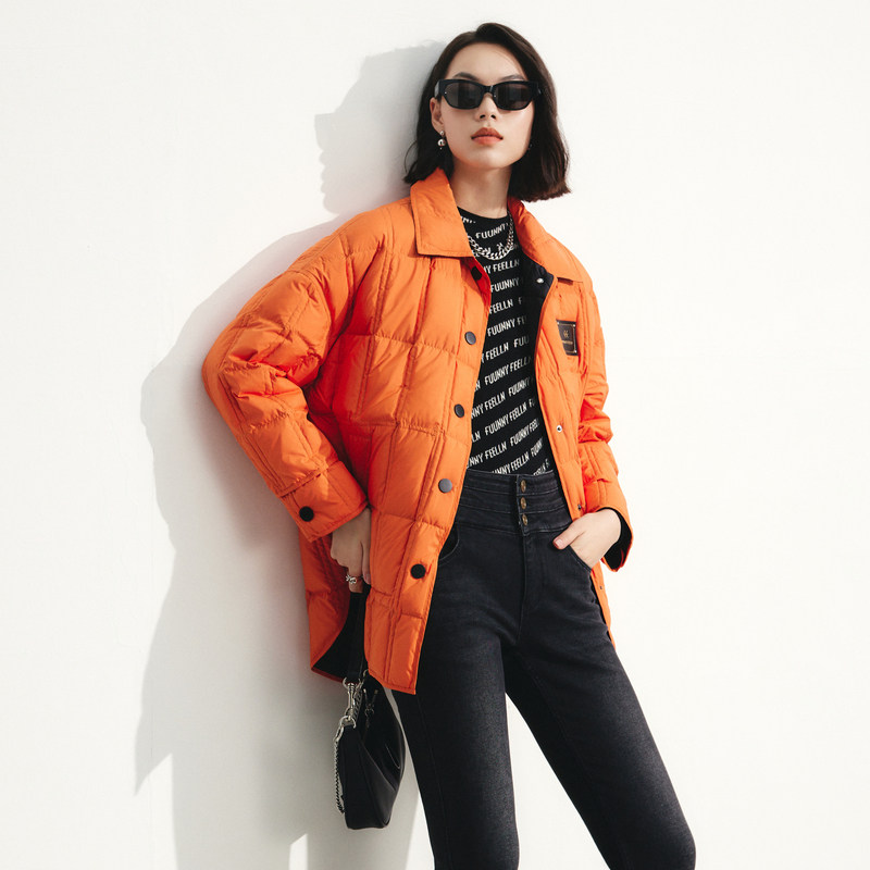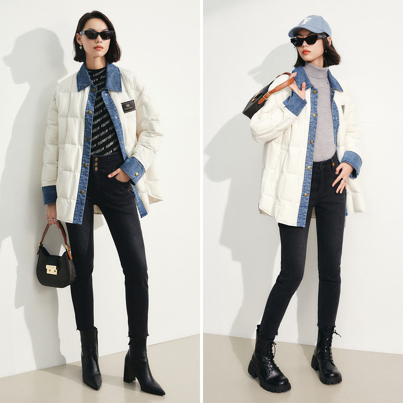 📚 FF仿佛冬季中长款宽松轻暖牛仔拼接衬衫羽绒服女时尚