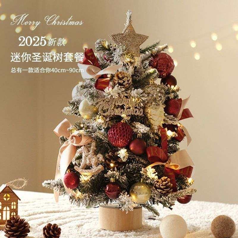 📚 迷你圣诞树带灯2025新款圣诞节装饰桌面摆件家用ins风圣诞树套餐