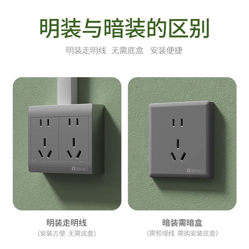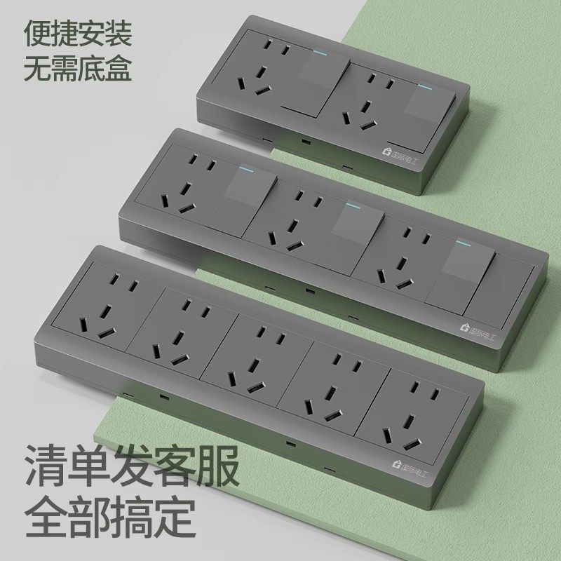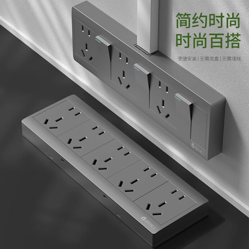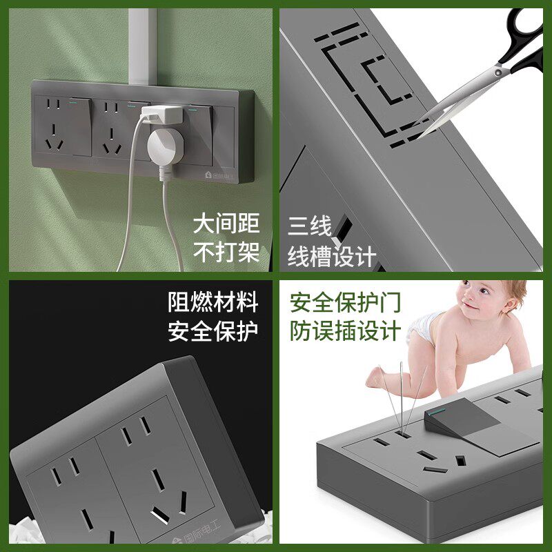 📚 国际电工厨房扩展式多孔插座带开关一开十二孔接线板明装1开12眼