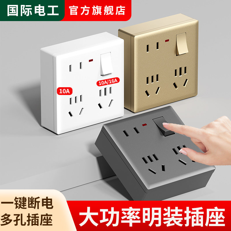📚 明装多功能一开十二孔电源插座独立开关带灯大功率空调热水器插座