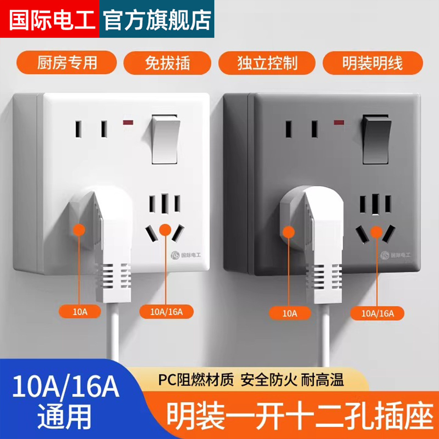 📚 86型明暗装16A大功率一开十二孔10A多八孔厨房空调插座面板带开关