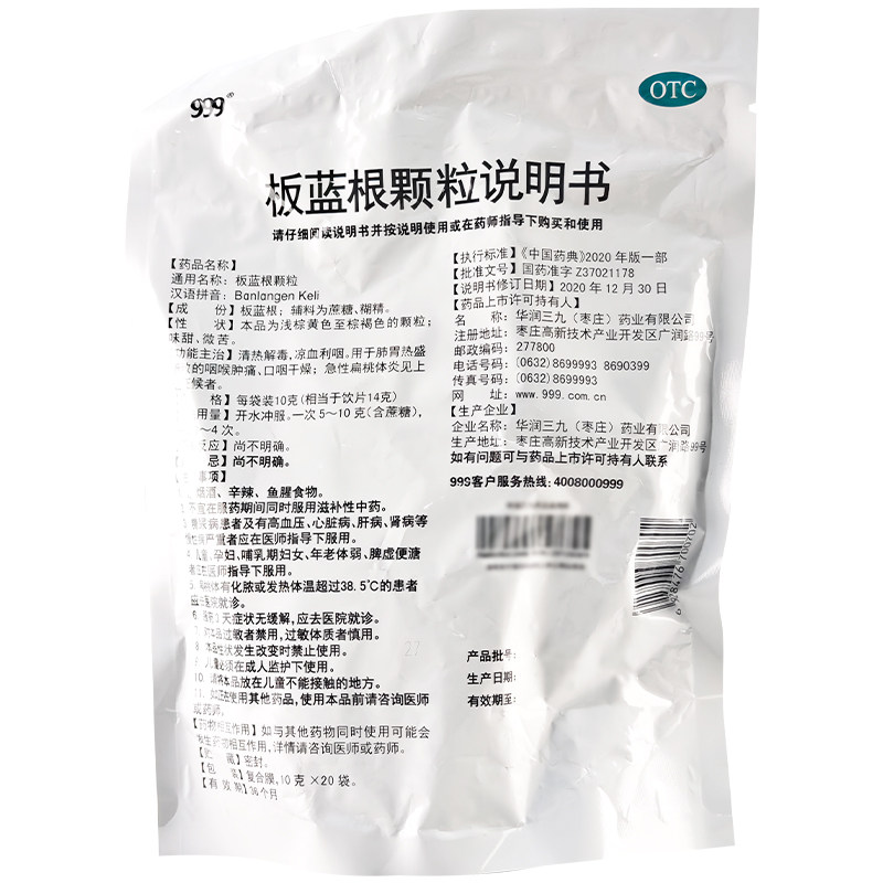 📚 999板蓝根颗粒20袋肺胃热咽喉肿痛口咽干燥急性扁桃体炎