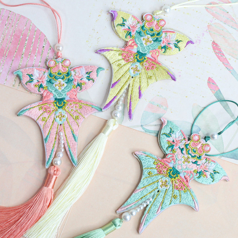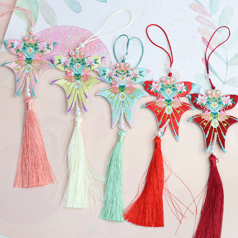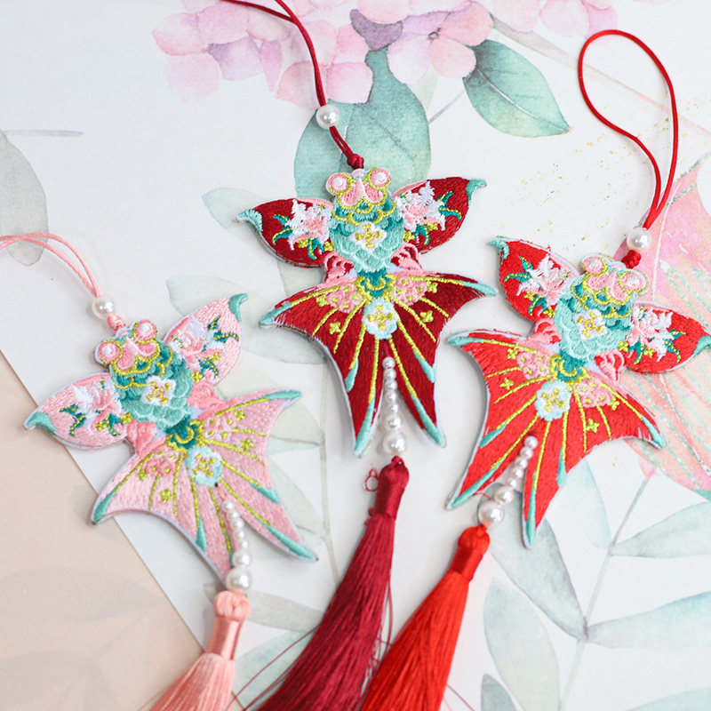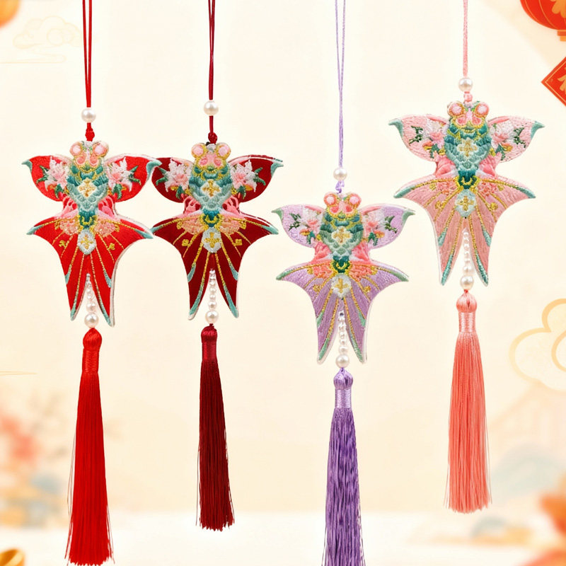 📚 悦木新年古风刺绣风筝鱼挂饰流苏挂件春节盆栽福桶中国结装饰配件