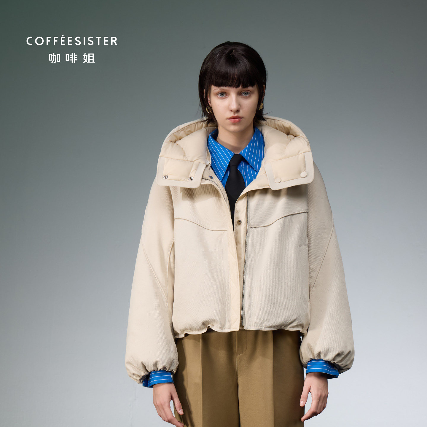 📚 coffeesister咖啡姐加厚保暖短款O型撞料两面穿羽绒服CAJD1886