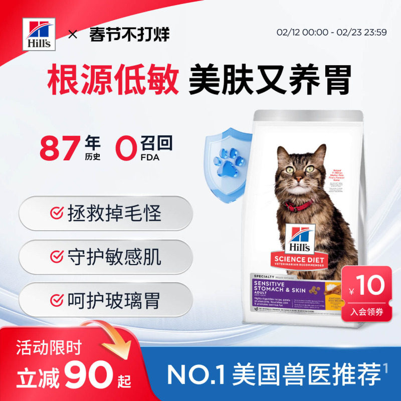 📚 (低敏猫粮)Hill's希尔思皮肤肠胃敏感抗过敏美毛进口成猫粮希尔斯