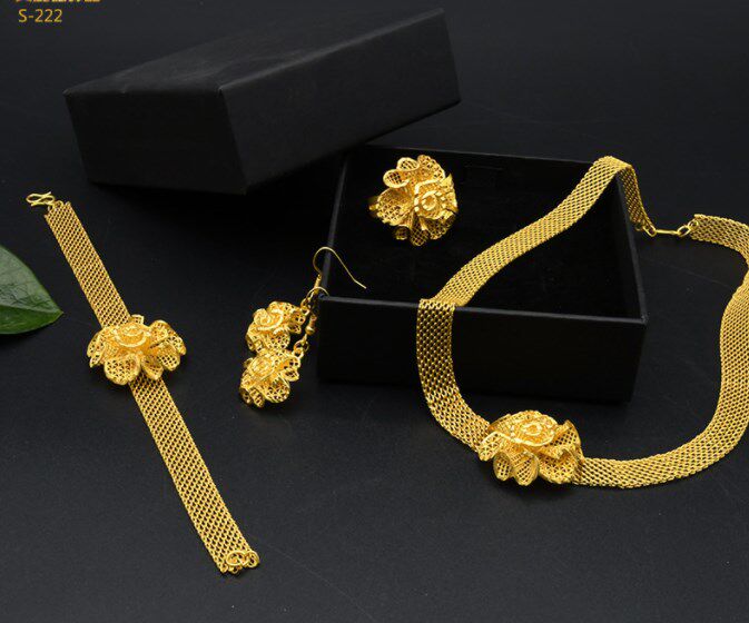 📚 24K gold jewelry Bridal Flower Necklace Bracelet Earring Rin