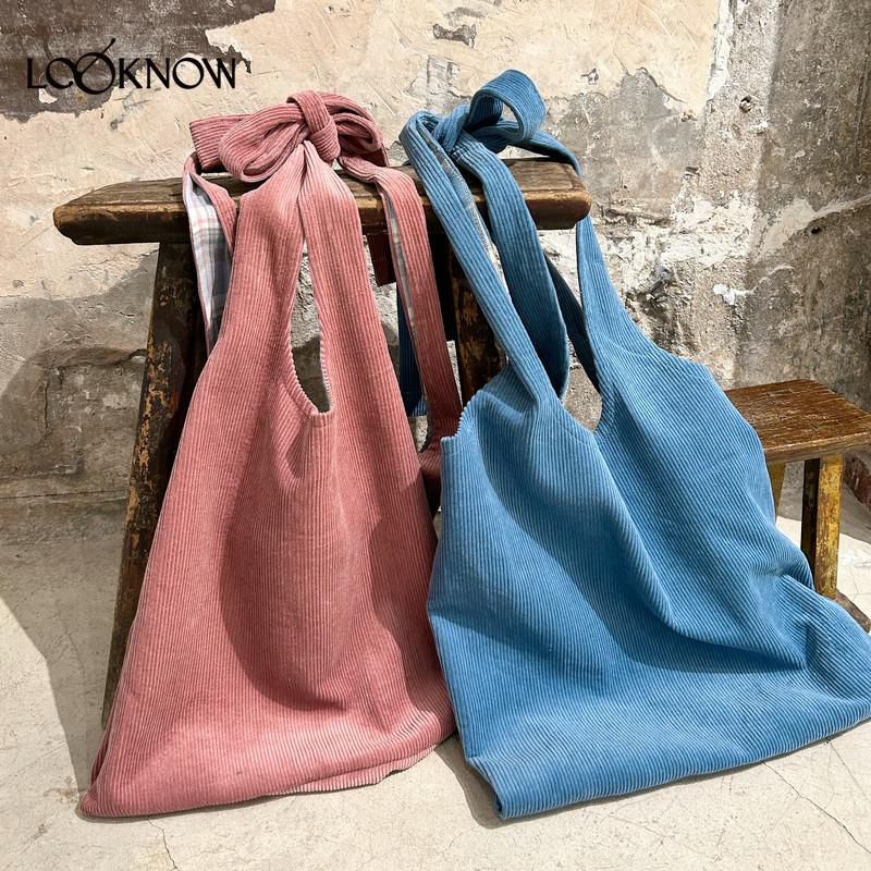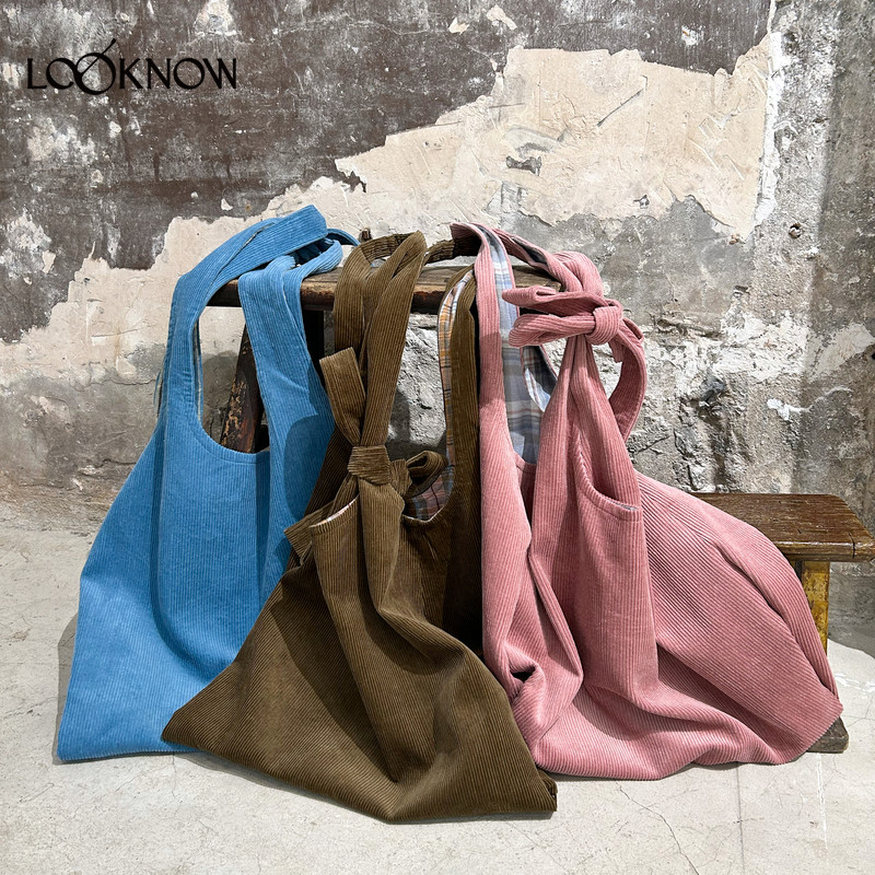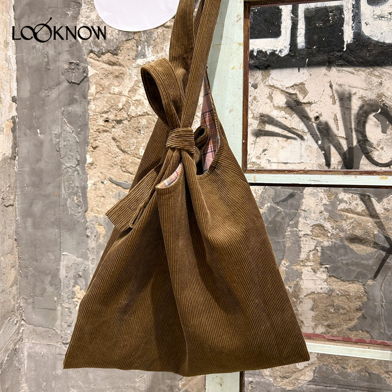📚 Matte Revolution设计师品牌LOOKNOW棕色灯芯绒拼接格纹包包