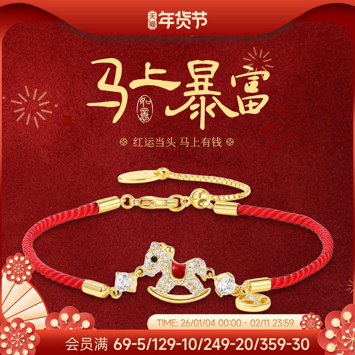 79¥ CZ193 v7MEUlEkTqx¥ https://m.tb.cn/h.7vfr13y DODOGOGO满钻小马红绳手链女2026新款马年生肖手饰红色新年手绳 --------------------- 【原售价】59.9元 【现售价】59.9元。