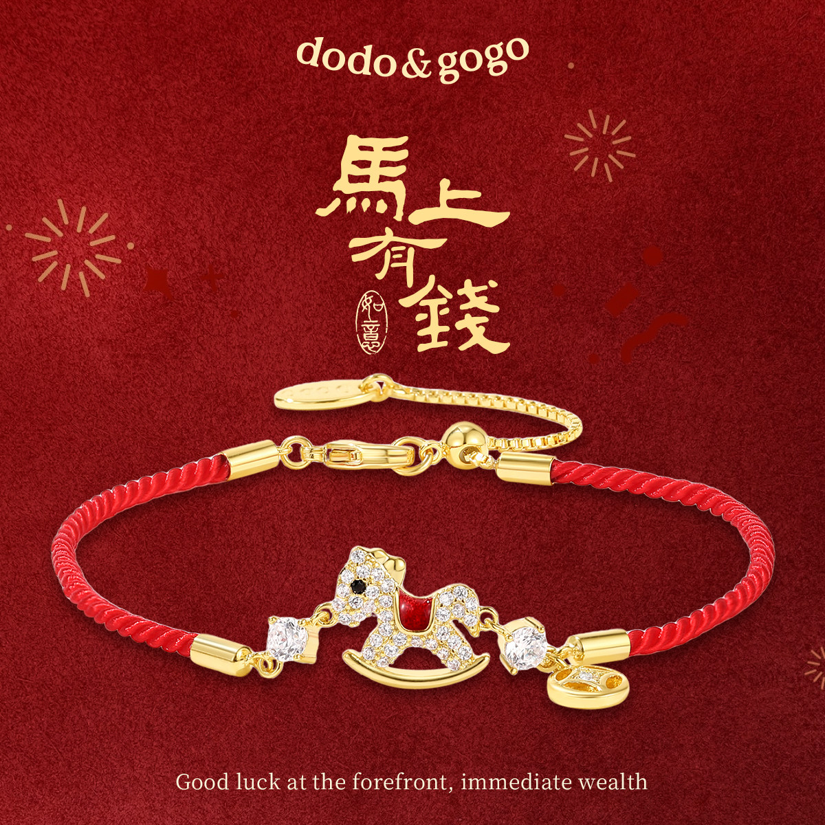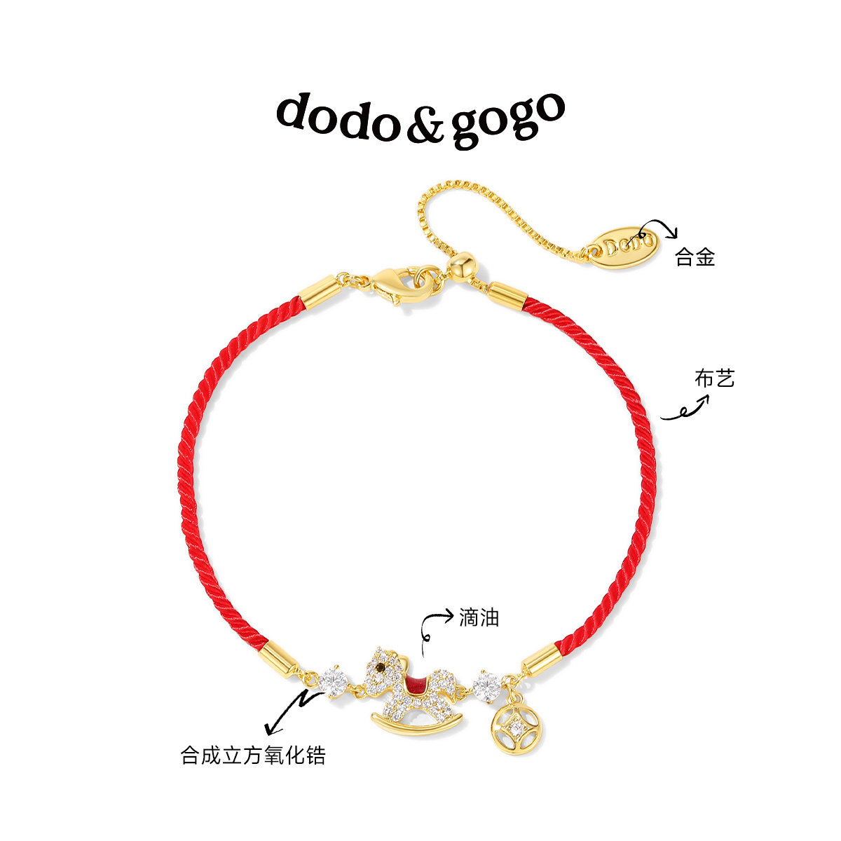 📚 DODOGOGO满钻小马红绳手链女2026新款马年生肖手饰红色新年手绳