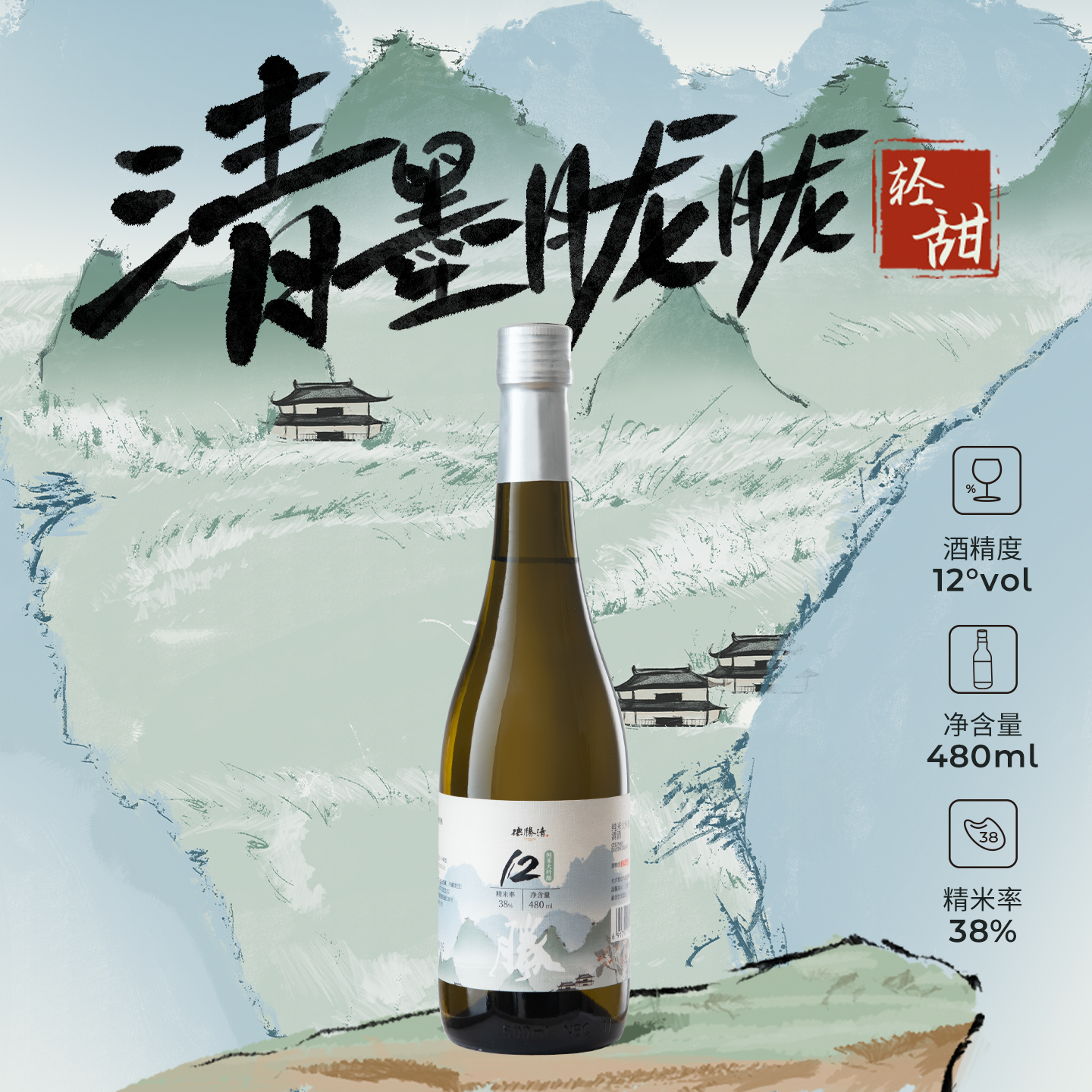 📚 德胜清纯米大吟酿38清酒 清墨胧胧系列12度微醺 纯米酿造 送礼