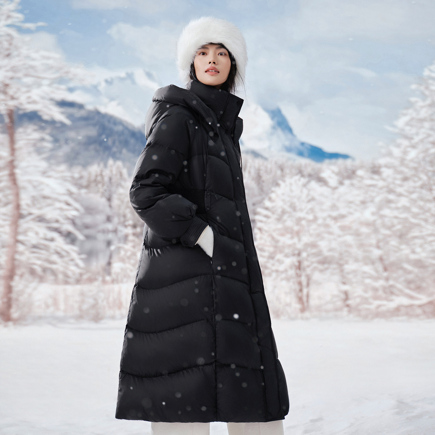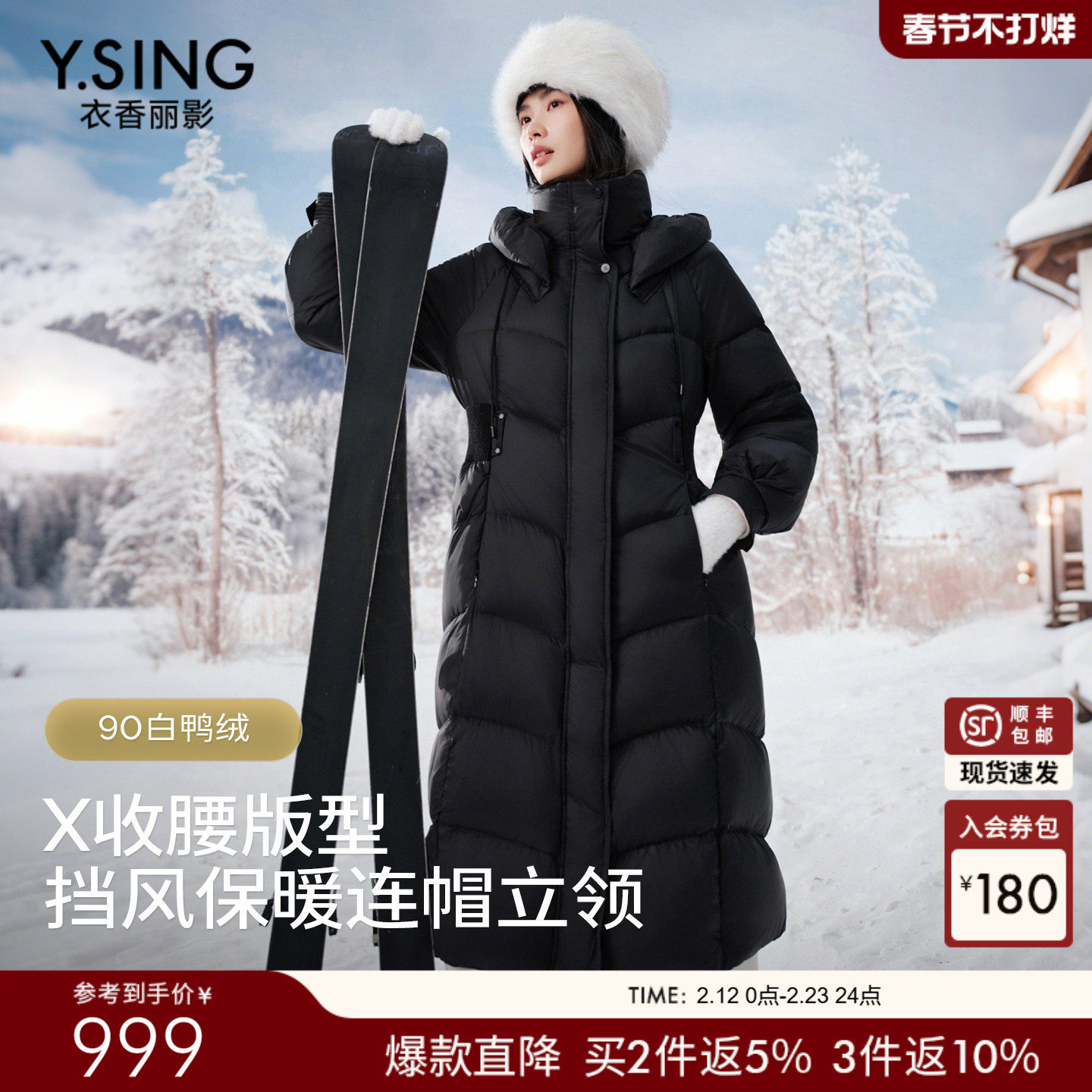 📚 衣香丽影黑色连帽羽绒服女中长款2025冬装新款收腰外套141117510