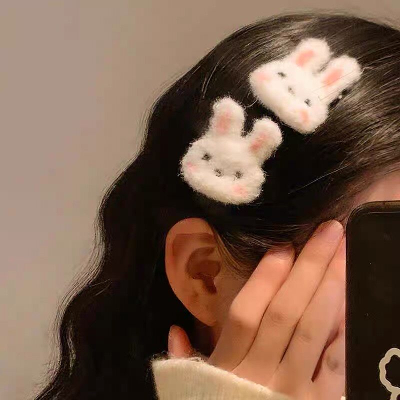 📚 可爱腮红小兔子发夹女刘海侧边毛茸茸发卡夹子头饰小号儿童发饰