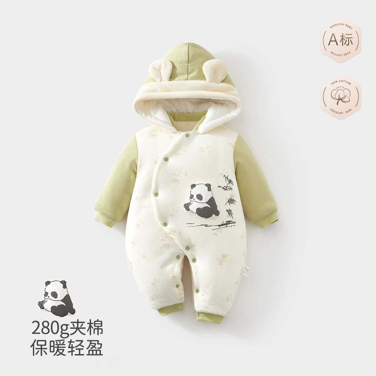 📚 婴儿衣服冬季加厚280g新生宝宝熊猫夹棉连体衣外出服秋冬装初生棉