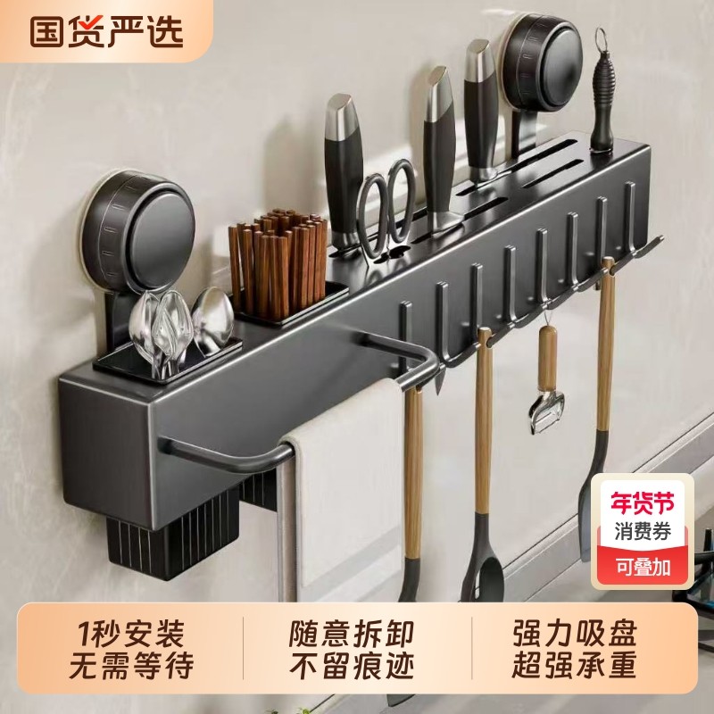 📚 吸盘挂钩刀架免打孔厨房壁挂式多功能锅铲刀具收纳架置物架筷子