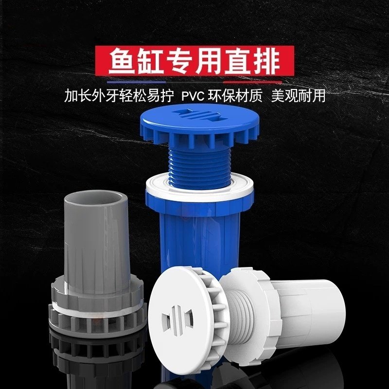 📚 PVC鱼缸强排下水管件接头水族箱配件 水箱海鲜池排污口底滤缸排水