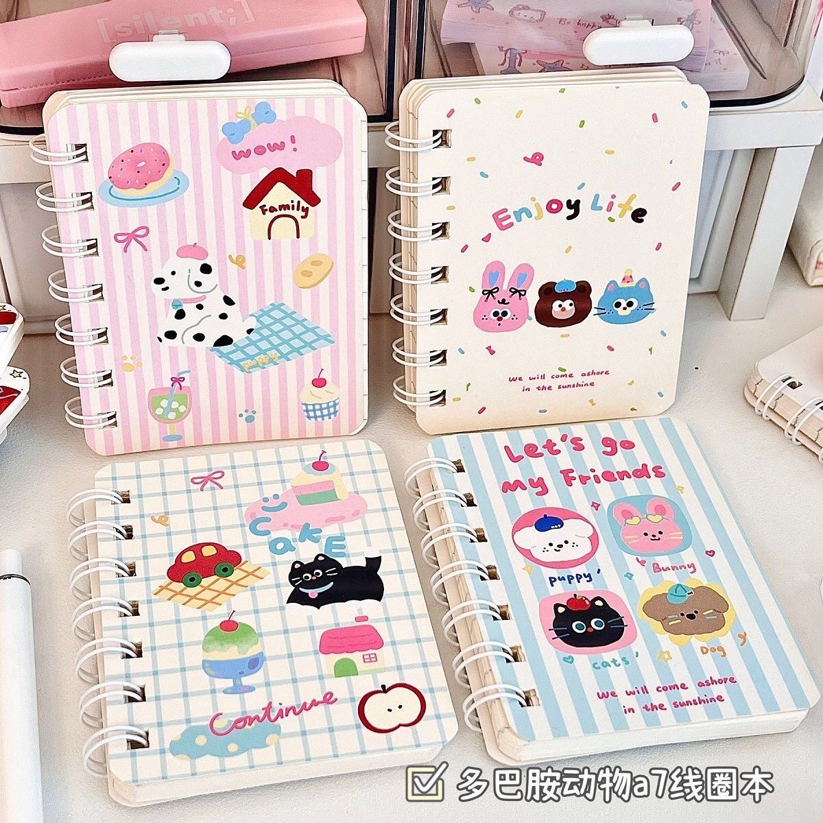 📚 原创卡通可爱动物A7线圈本子便携迷你口袋本侧翻高颜值ins风学生记事随手记横线单词本作业记录本便签本新款