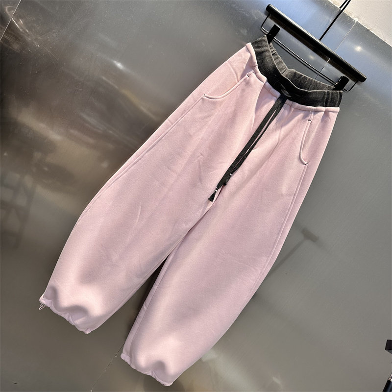 📚 【有单裤】美式撞色减龄加绒加厚休闲弯刀裤女少女感阔腿长裤