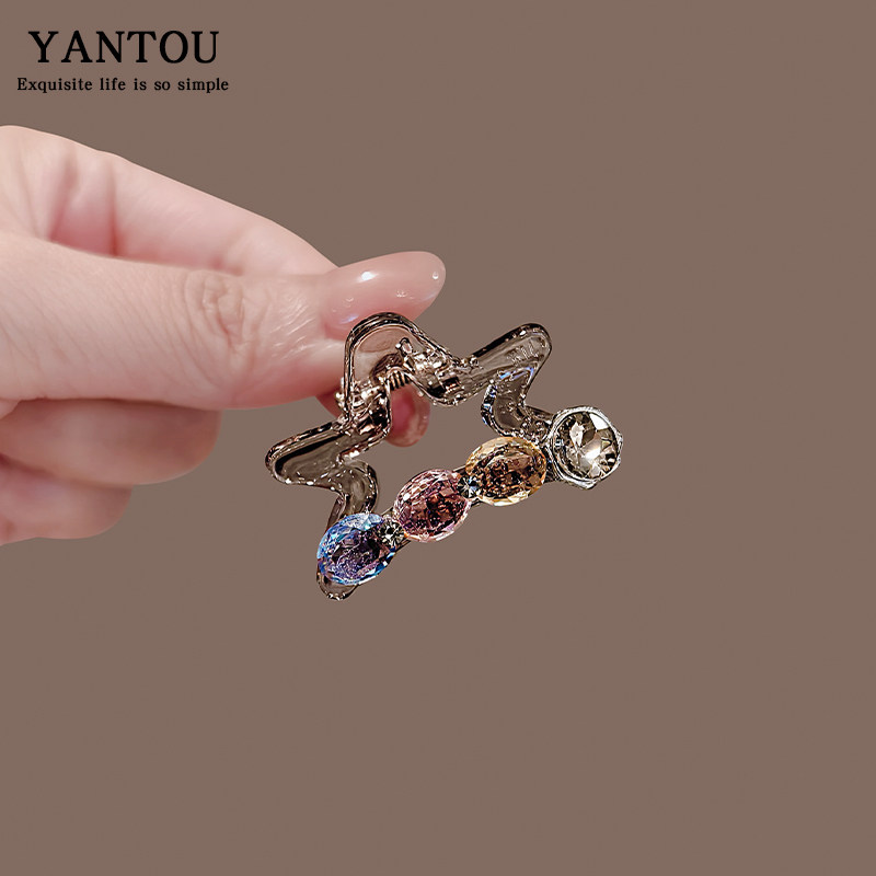 📚 精致半扎小号半扎发抓夹百搭款五角星时尚个性韩系闪钻发饰发夹女