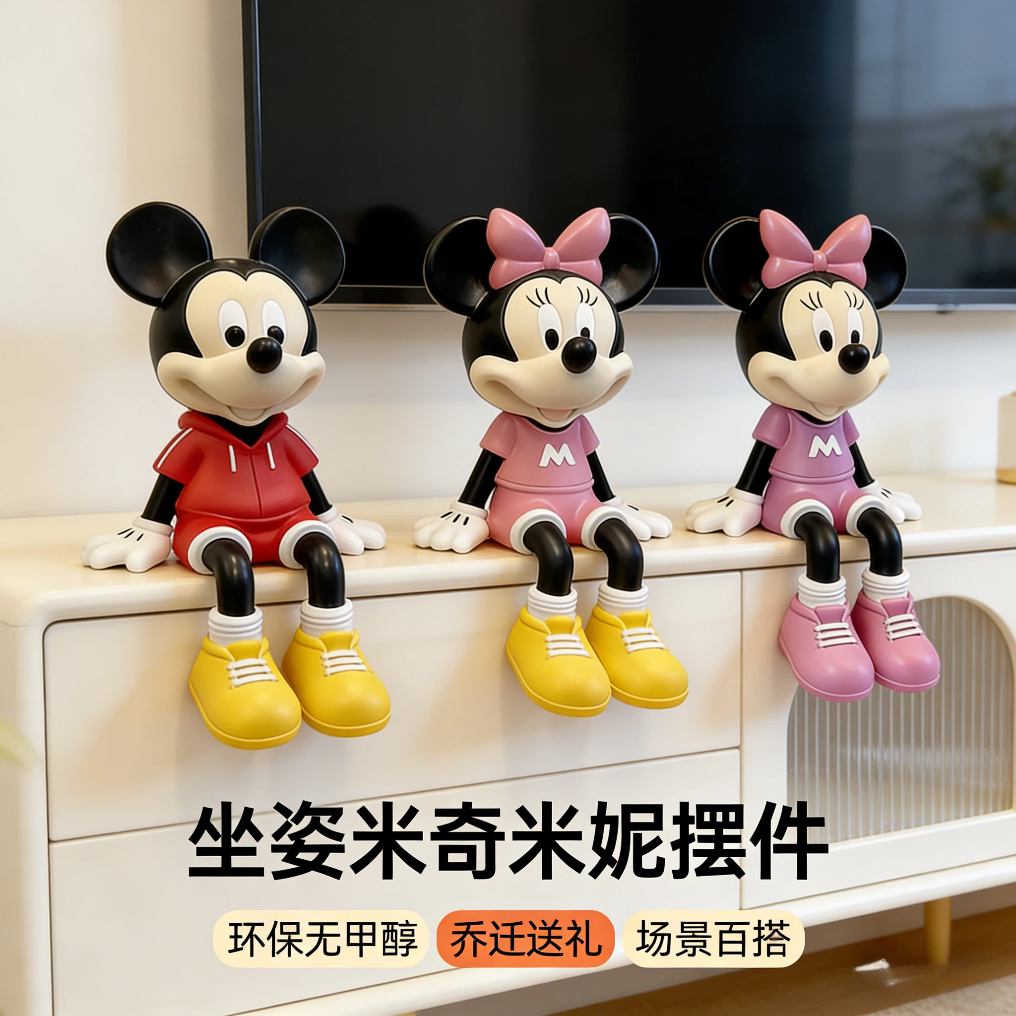 📚 米奇米妮坐姿摆件入户玄关客厅背景墙电视柜新家乔迁装饰品高级感