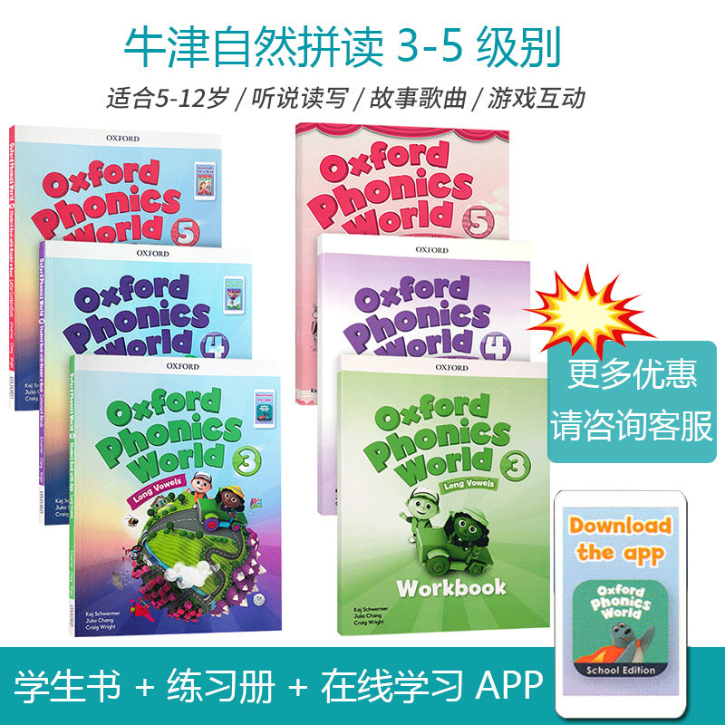 📚 原版Oxford Phonics World 牛津Phonics自然拼读 第3-5册英文原版学生课本+练习册含APP 少儿英语启蒙 OPW零基础入门 A到Z字母发音