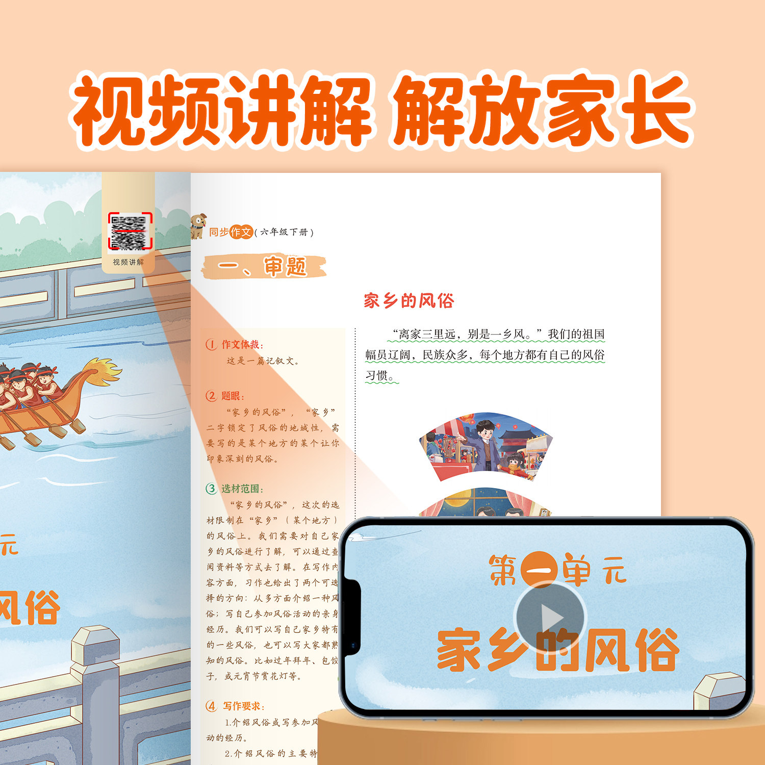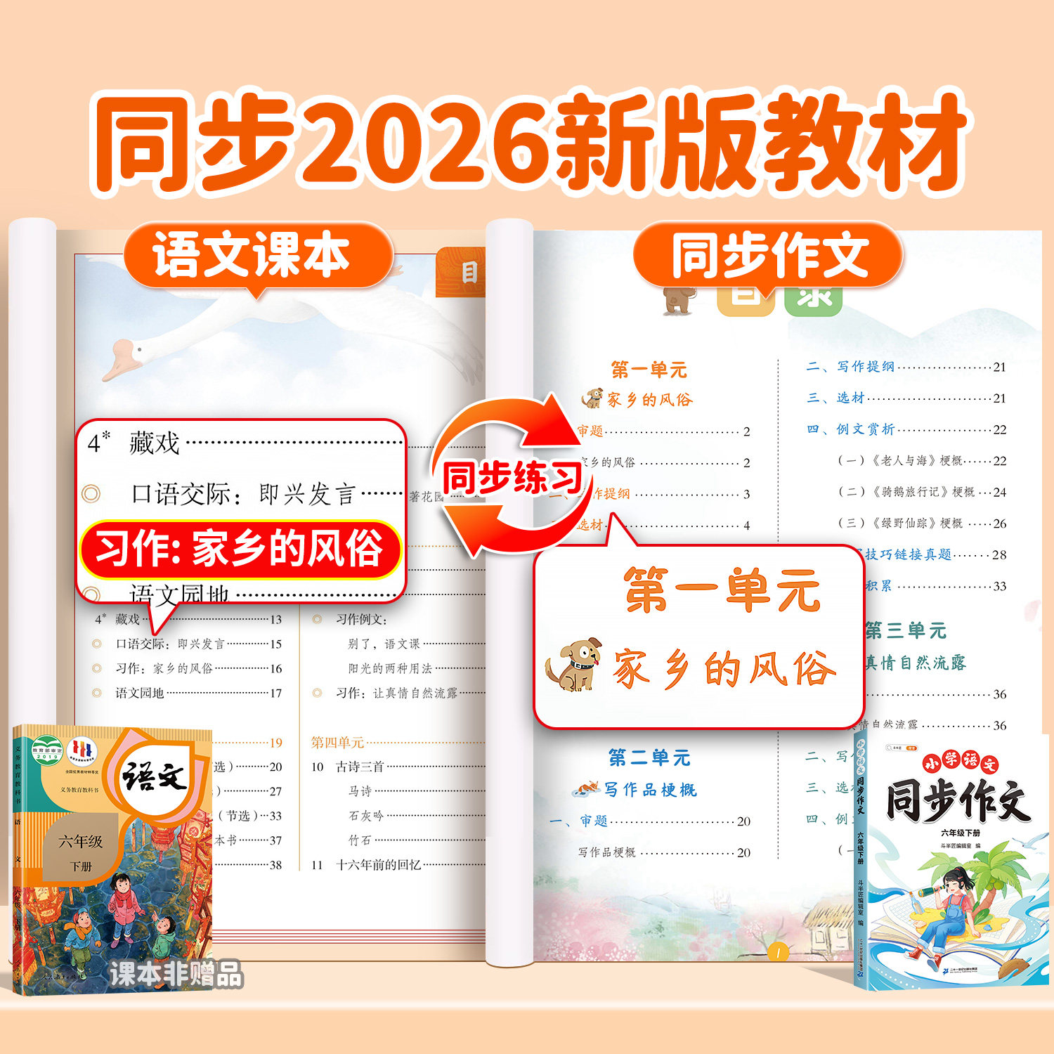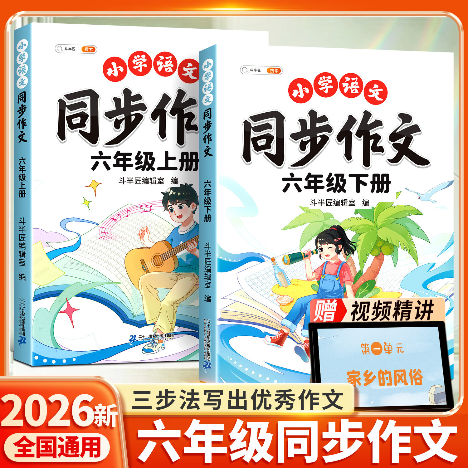 📚 六年级下册同步作文人教版2026新版上册小学六下语文部编小学生优秀分类作文书大全仿写素材积累写作训练技巧五感法范文6下斗半匠