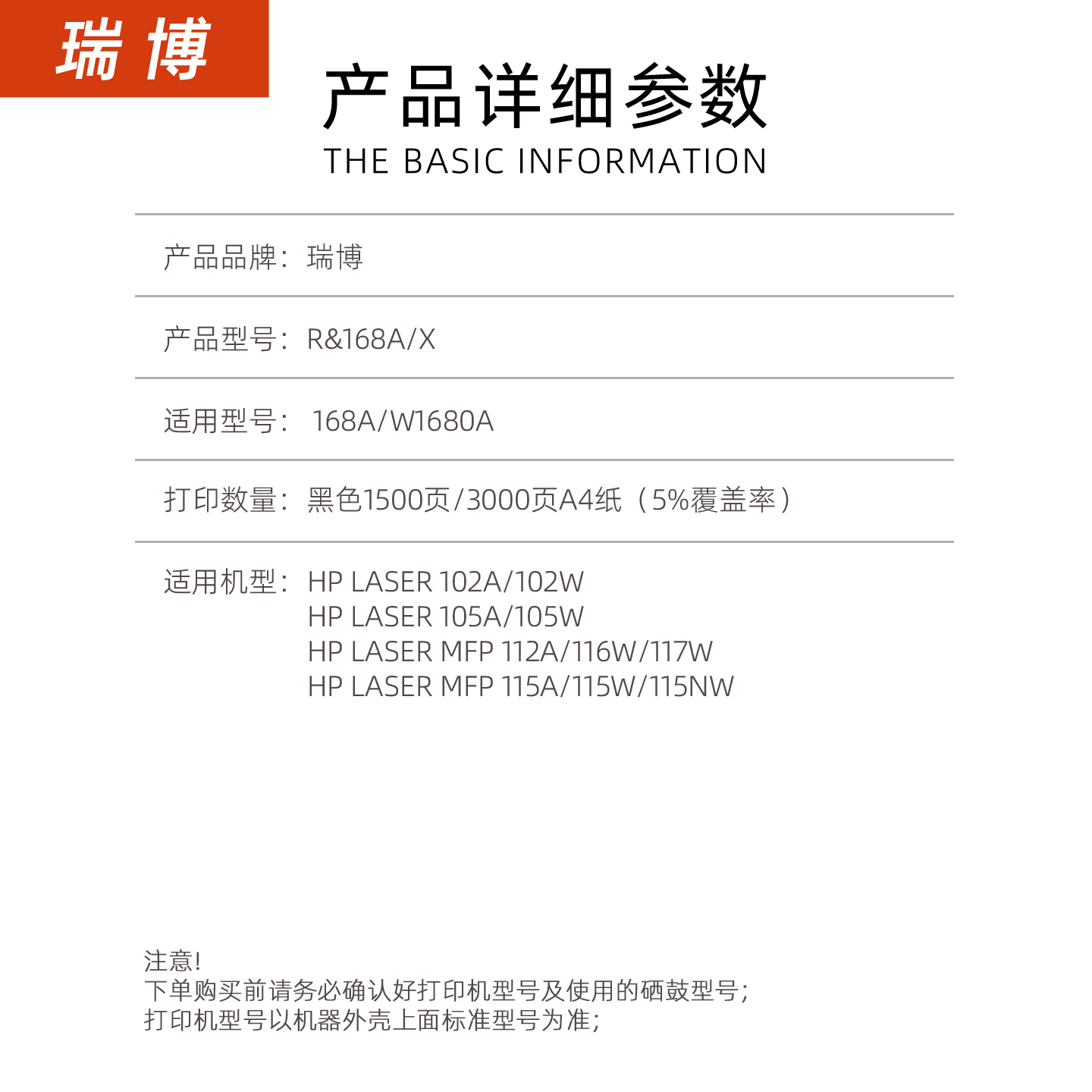 📚 瑞博适用惠普117w硒鼓168A 105a 105w 115w激光打印机HP Laser MFP116w碳粉盒115a一体机115nw易加粉W1680A