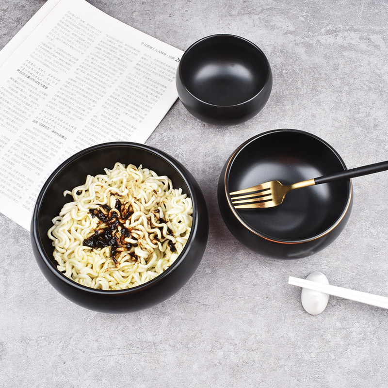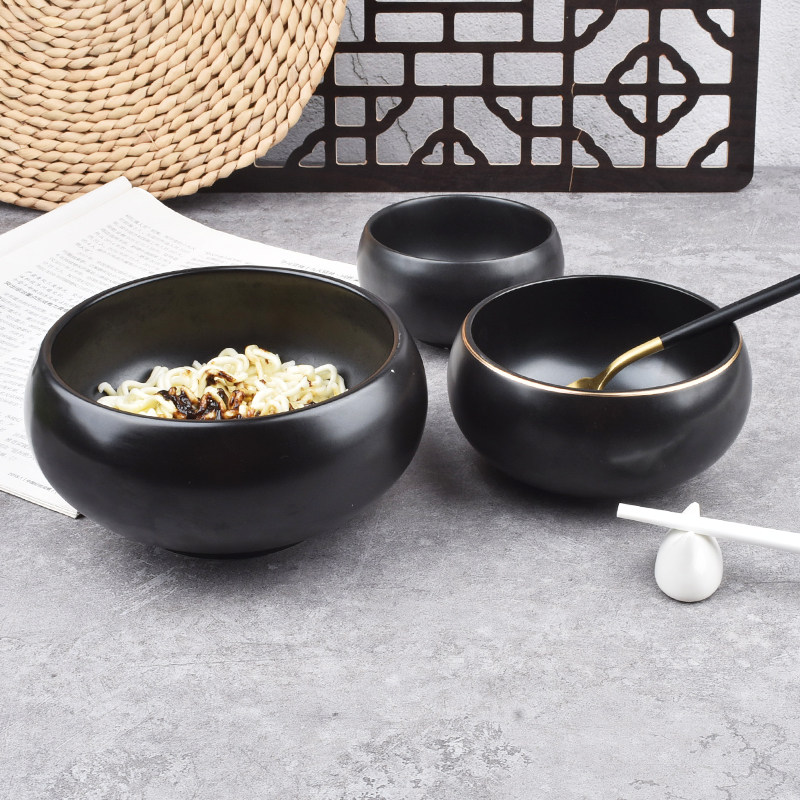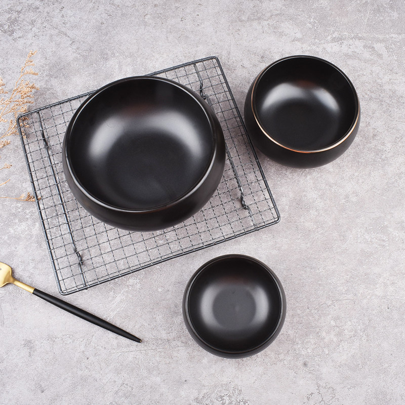 📚 陶瓷钵盂碗菜碗吃饭碗黑色碗米饭碗 汤碗料理店餐具寺庙碗面碗大