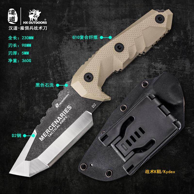 📚 汉道雇佣兵D2钢战术直刀野外求生刀户外刀具防身刀生存小刀高硬度