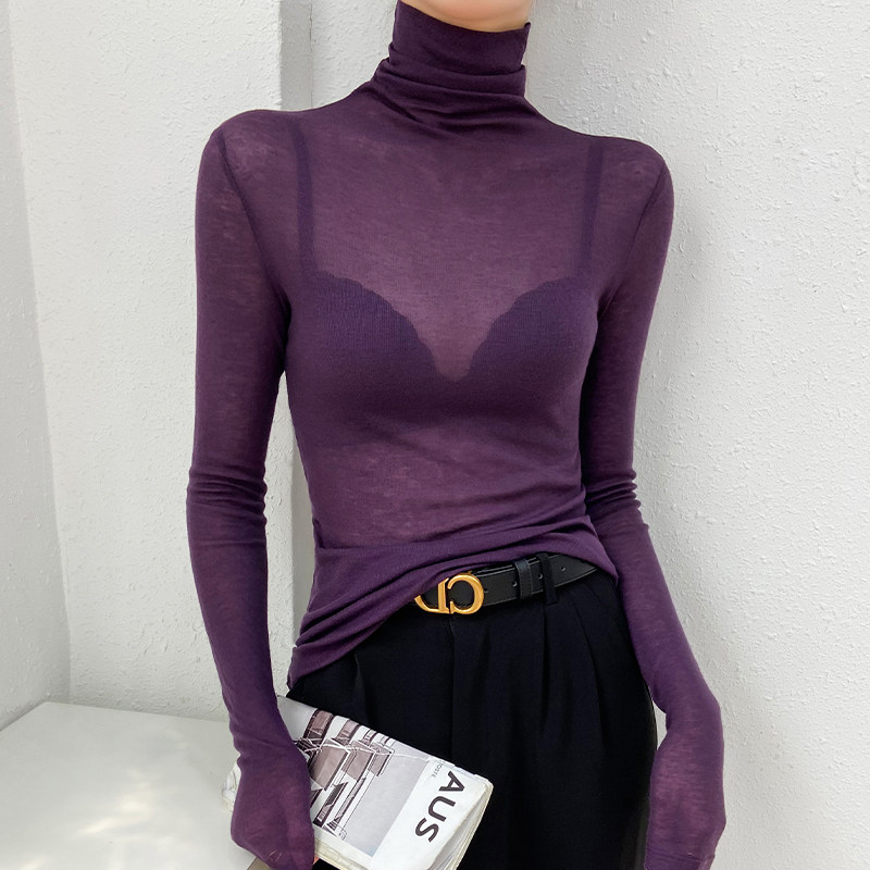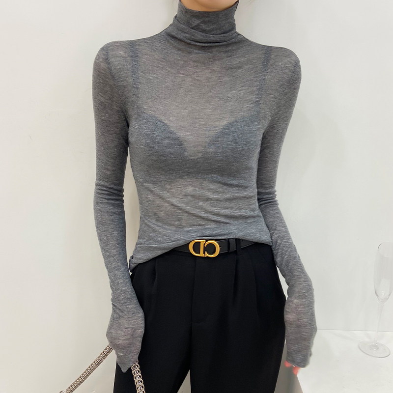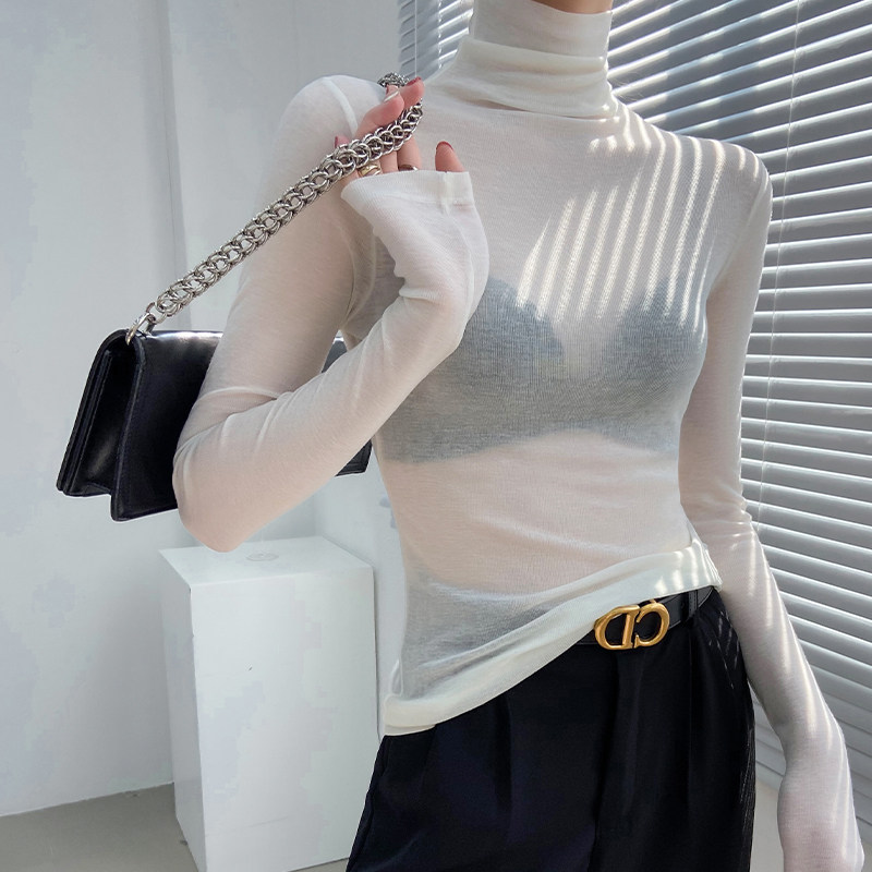 📚 高端欧货洋气打底衫女秋冬高级感黑色内搭薄款微透高领堆堆领上衣