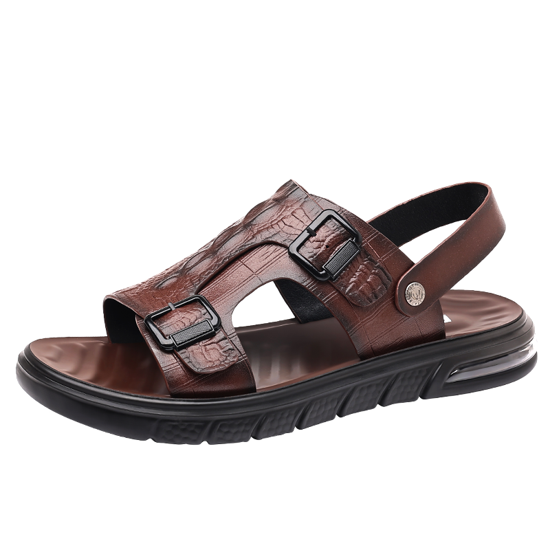 📚 真皮凉鞋男士夏季潮流软底沙滩鞋男外穿两用驾车鞋鳄鱼纹凉拖鞋男