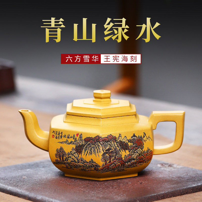 📚 纯手工原矿山水六方器泡茶壶功夫茶具家用六方雪华单壶