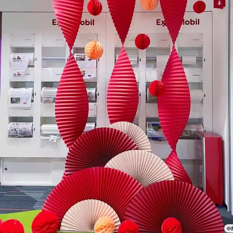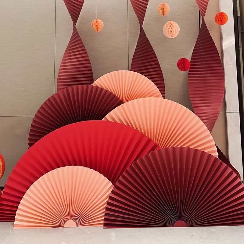 📚 2025跨新年橱窗扇子折扇国风背景布置装饰公司前台年会装扮大纸扇
