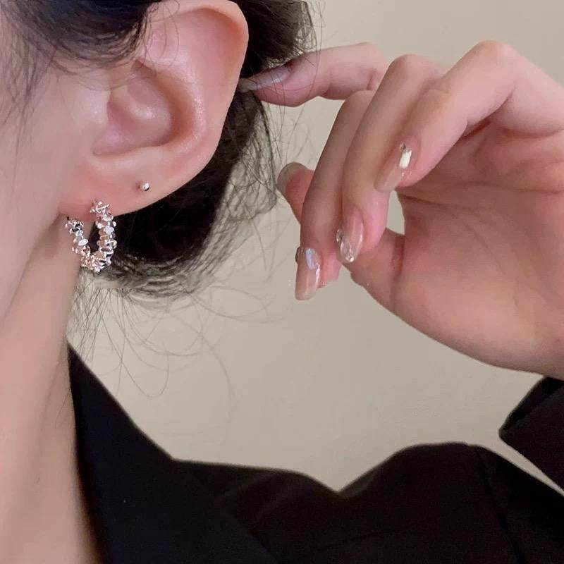 📚 S999纯银碎银耳钉新款爆款气质耳环百搭个性轻奢女小众设计高级感