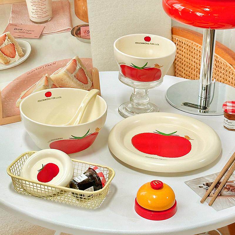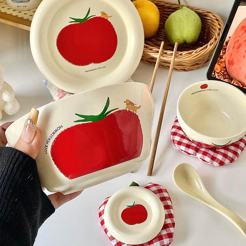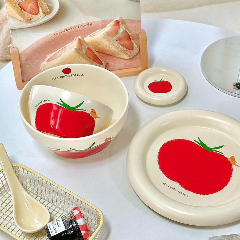 📚 没番恼&碗碟套装大番茄碗盘套装用可爱一人食餐具碗具套装ins风