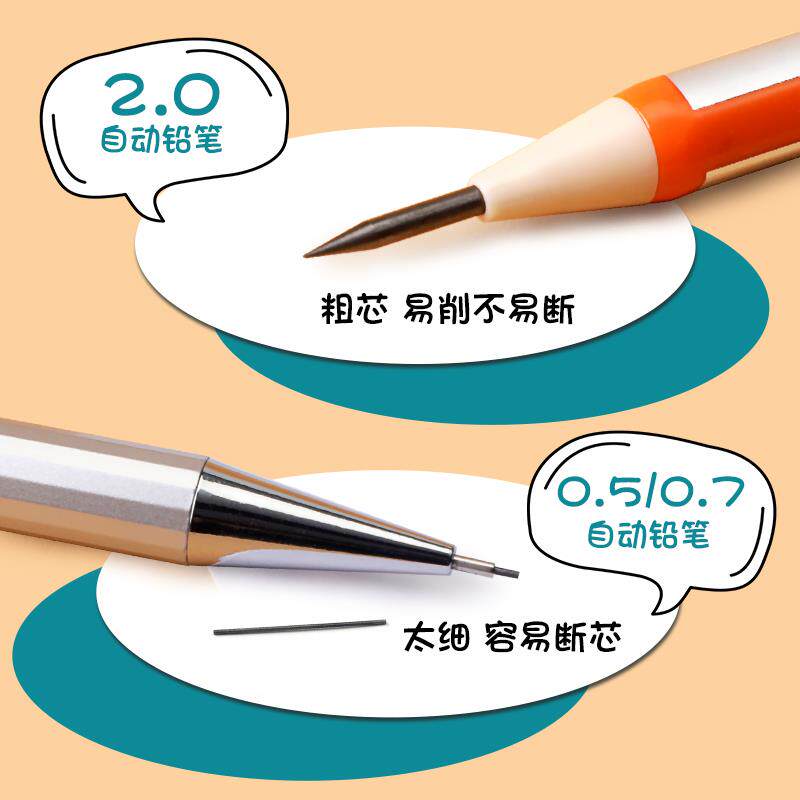 📚 晨光正品2.0mm自动铅笔按动粗头笔芯铅芯2b2比小学生儿童写考试绘画专用练字免削活动削笔刀