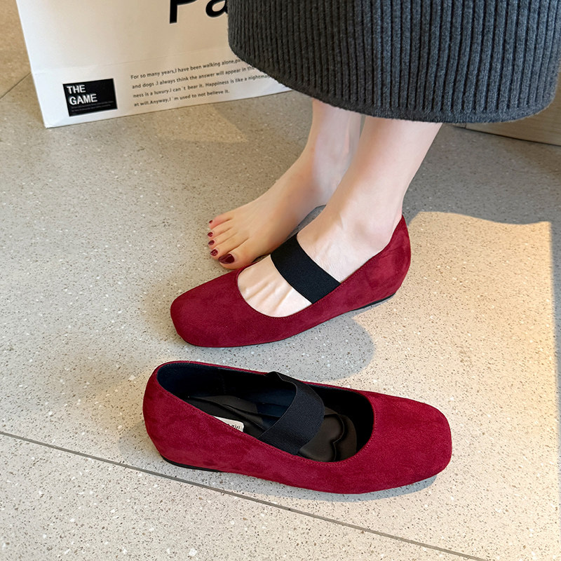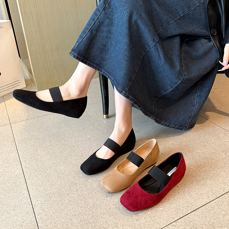 📚 方头浅口复古玛丽珍鞋女一字带内增高单鞋加宽胖脚大码女鞋41到43