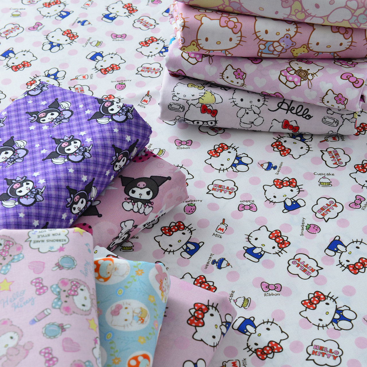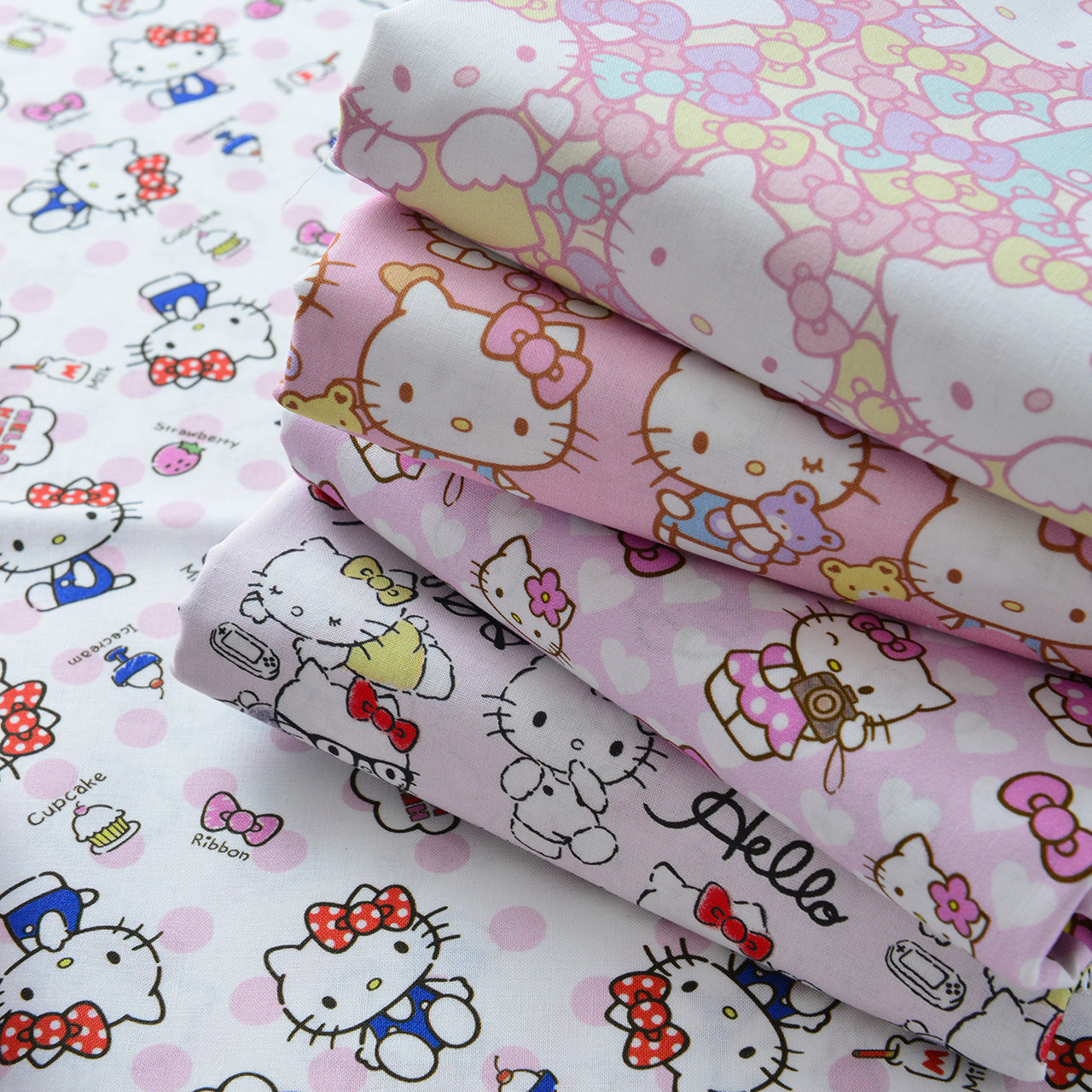📚 全棉卡通粉色凯蒂猫印染布料可爱蝴蝶结手工DIY布料童装衣裙棉布