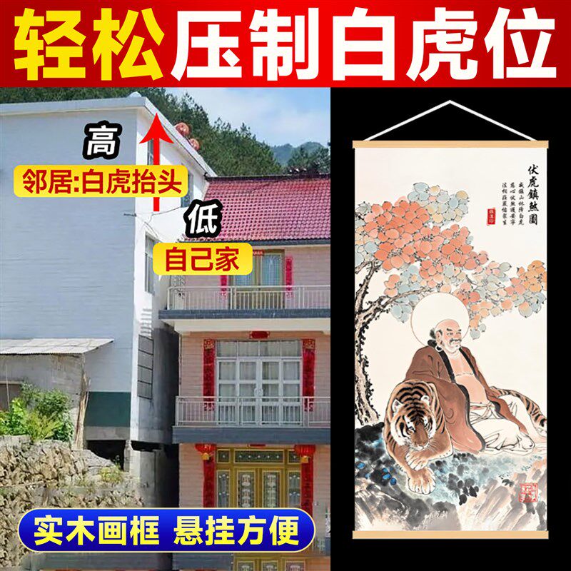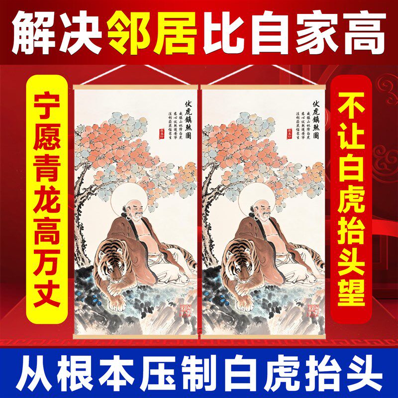 📚 伏虎罗汉像挂画青龙高万丈白虎探头邻居门比自己家高房屋左低右高