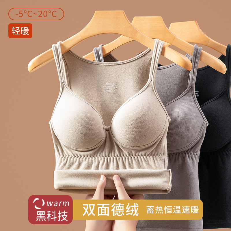 📚 带胸垫一体免穿文胸保暖背心女士冬天2025新款德绒低领加绒打底衫