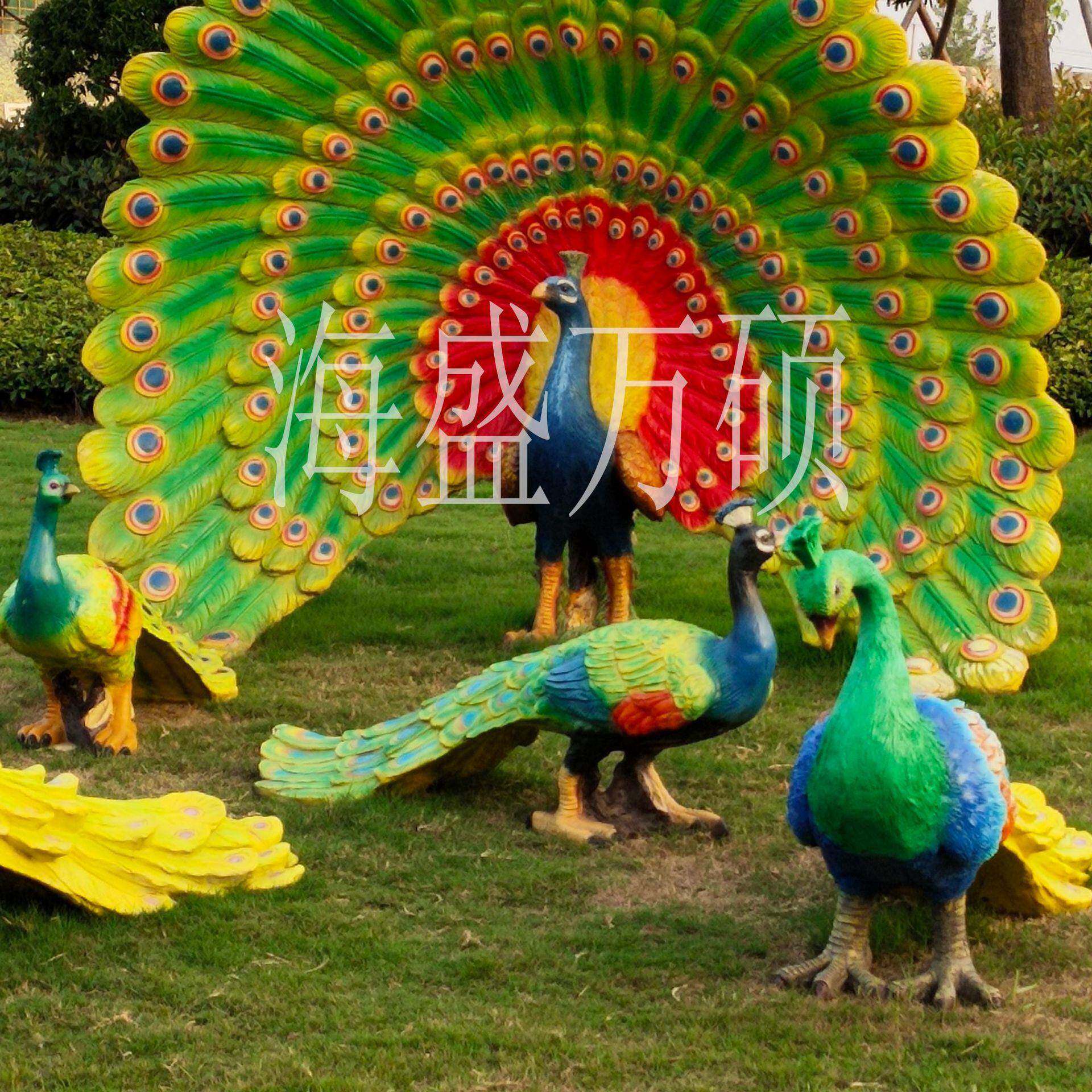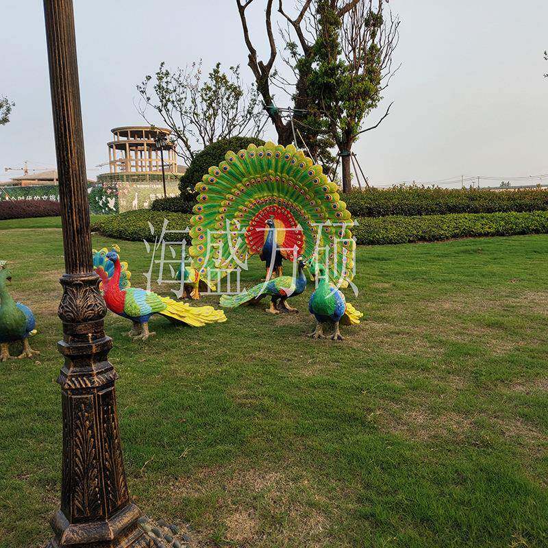 📚 玻璃钢户外开屏孔雀雕塑园林动物景观幼儿园装饰花园落地摆件