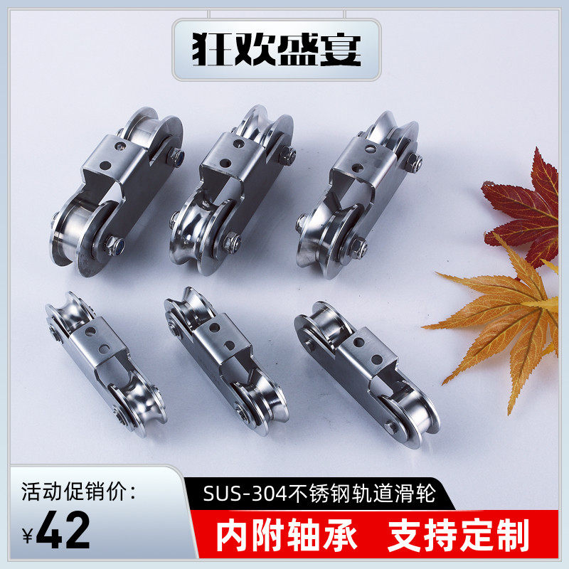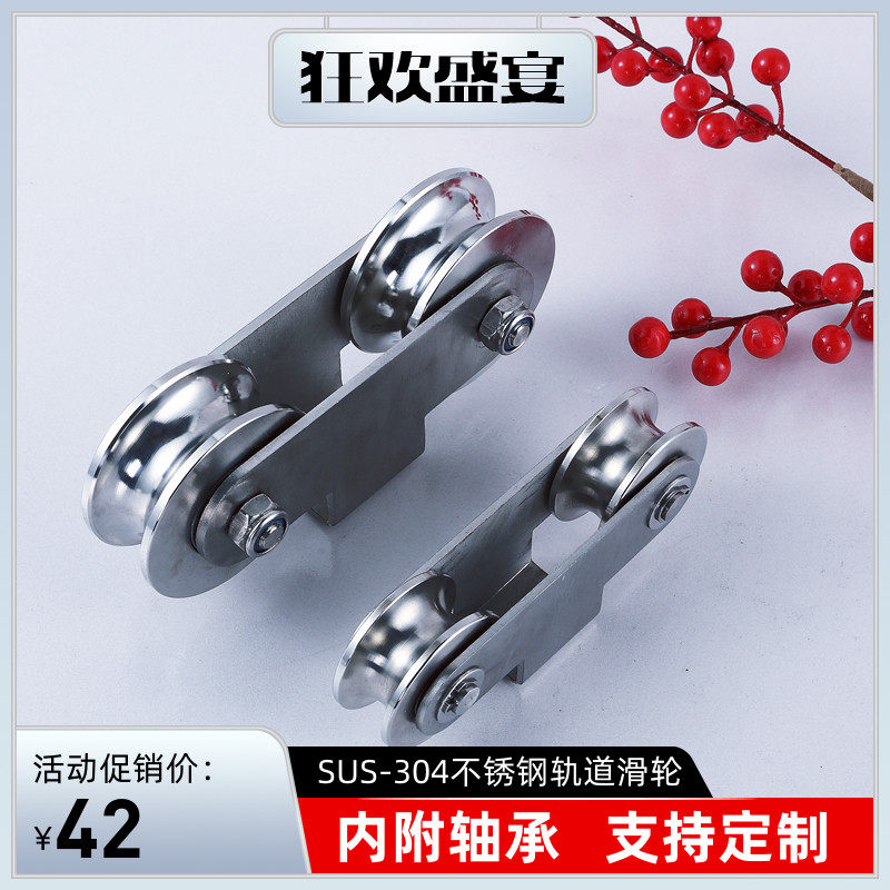 📚 304不锈钢重型双轮V型庭院门滑轮U型移门轮子H型槽钢工字钢定滑轮