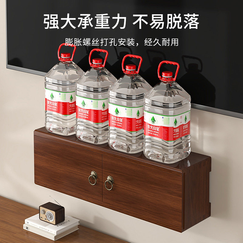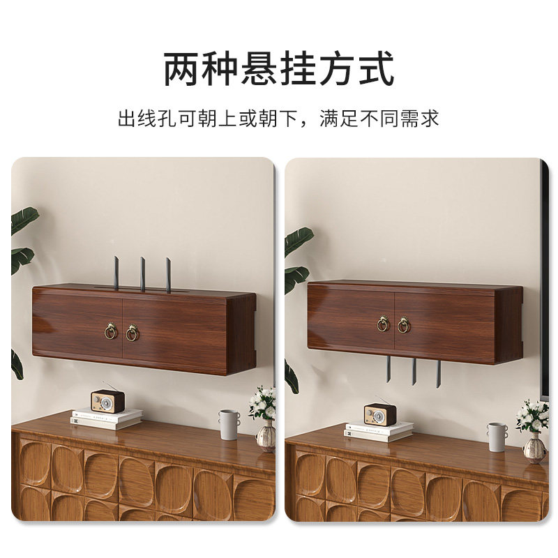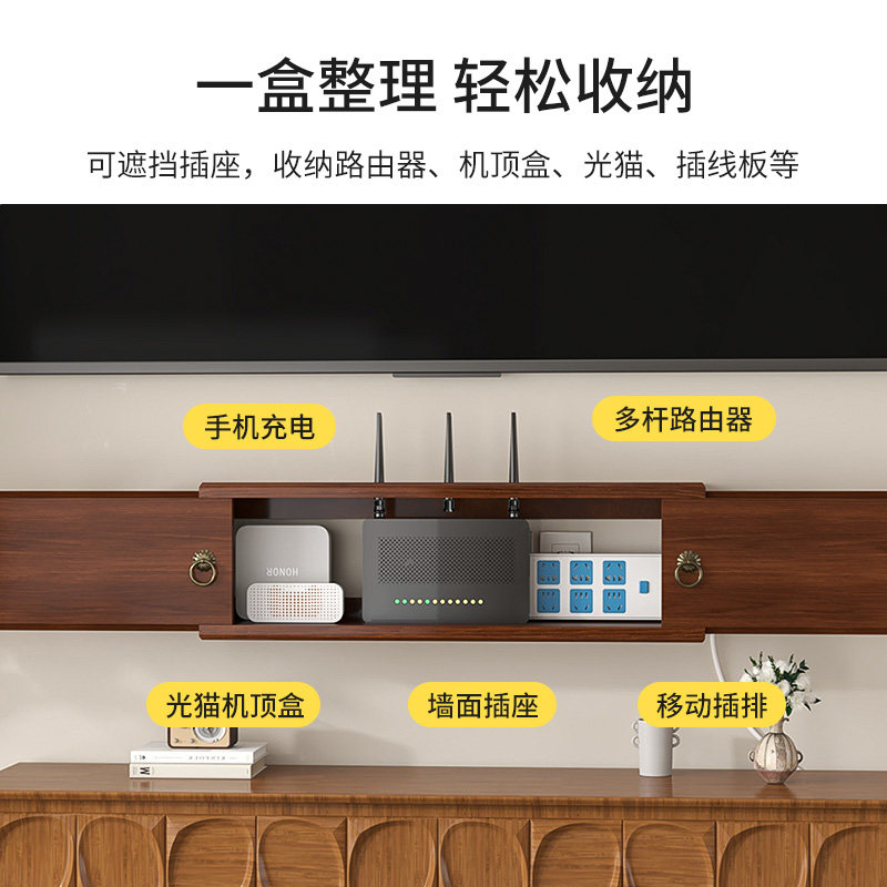📚 wifi电视机顶盒路由器收纳盒实木挂墙壁挂式电视柜插座遮挡置物架