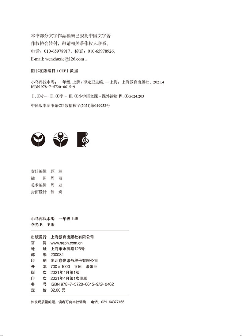 📚 小乌鸦找水喝 李光卫主编 fb一年级上 全文注音 小学生快乐阅读丛书 1年级第一学期语文同步课外阅读书籍 上海教育出版社 无障碍