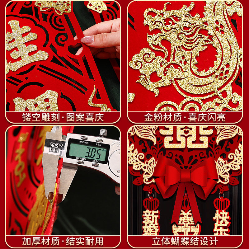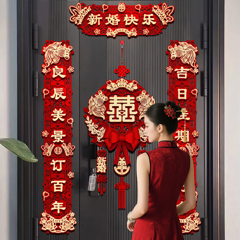 📚 结婚植绒对联入户门婚房男方大门喜联女方出嫁单元门新婚磁吸门联